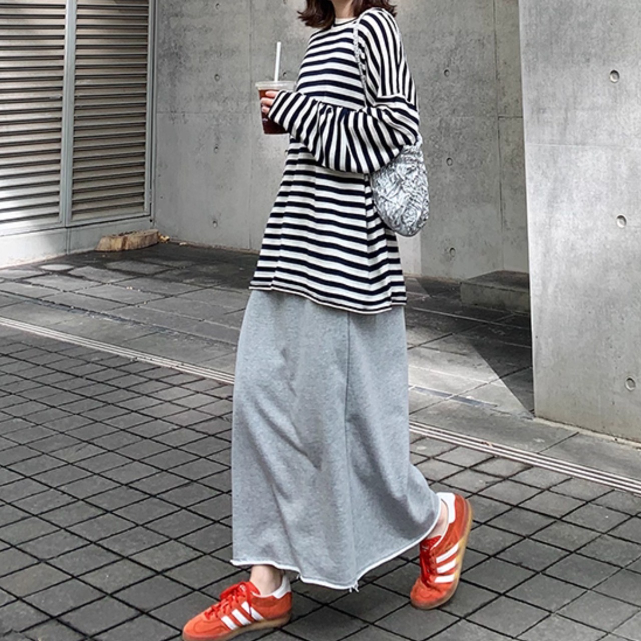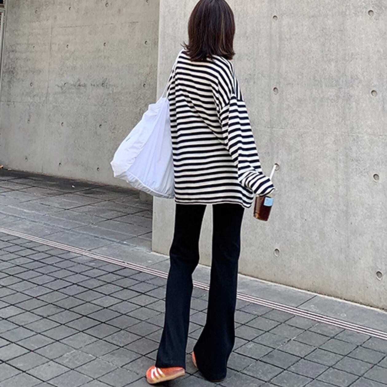 【ボーダー長袖オーバーサイズカットソー】B00001