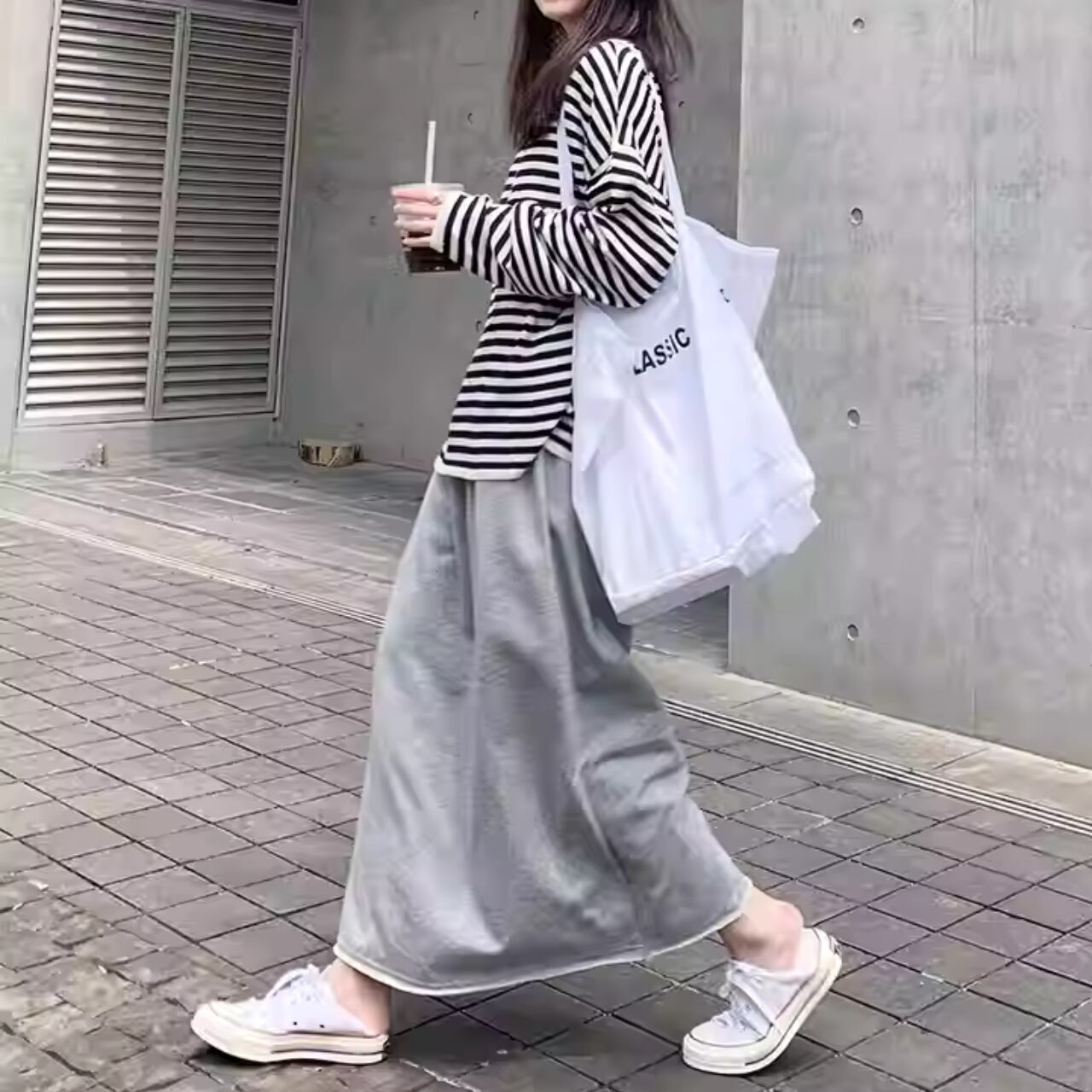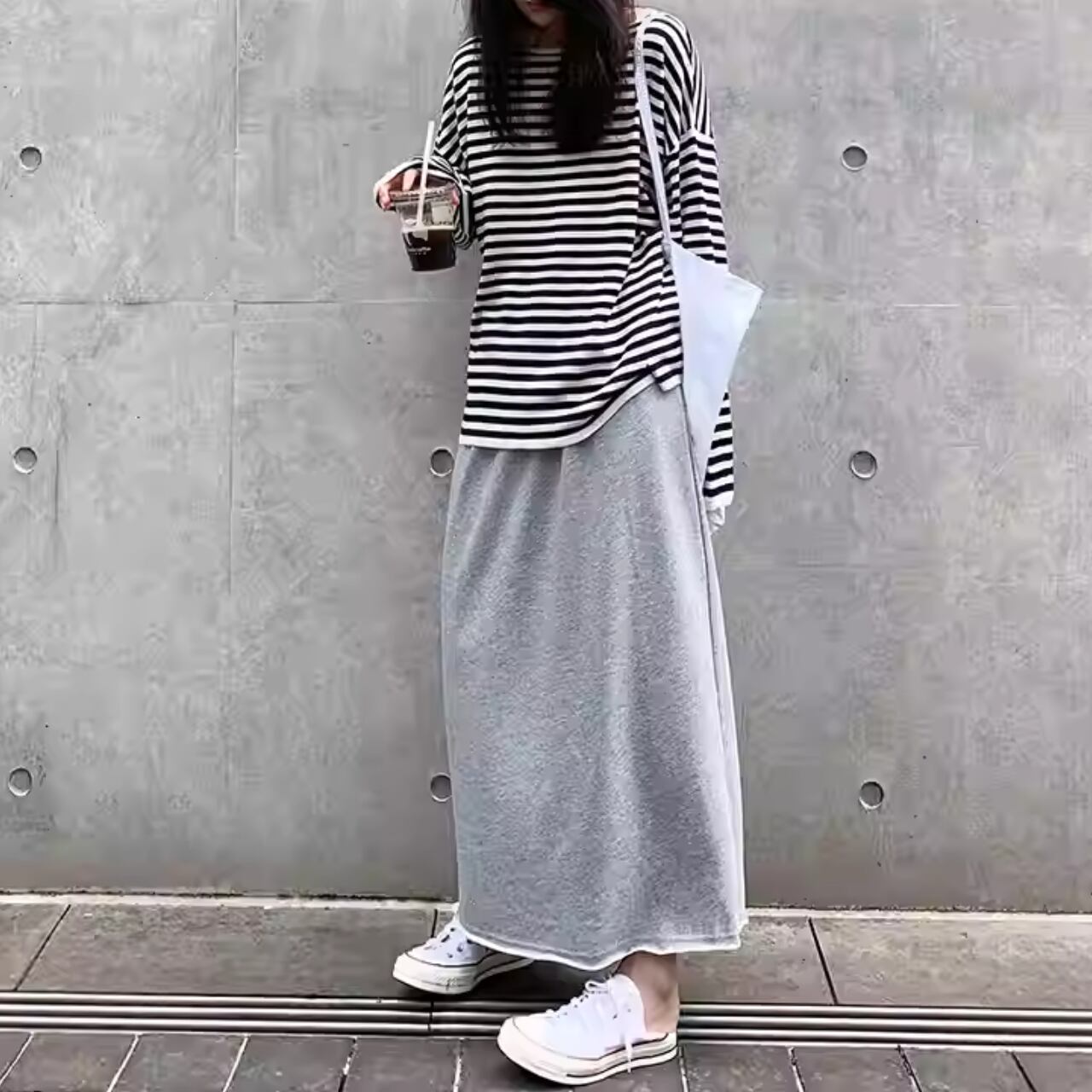 リラックス感とスタイルアップを両立するマキシ丈スカート。