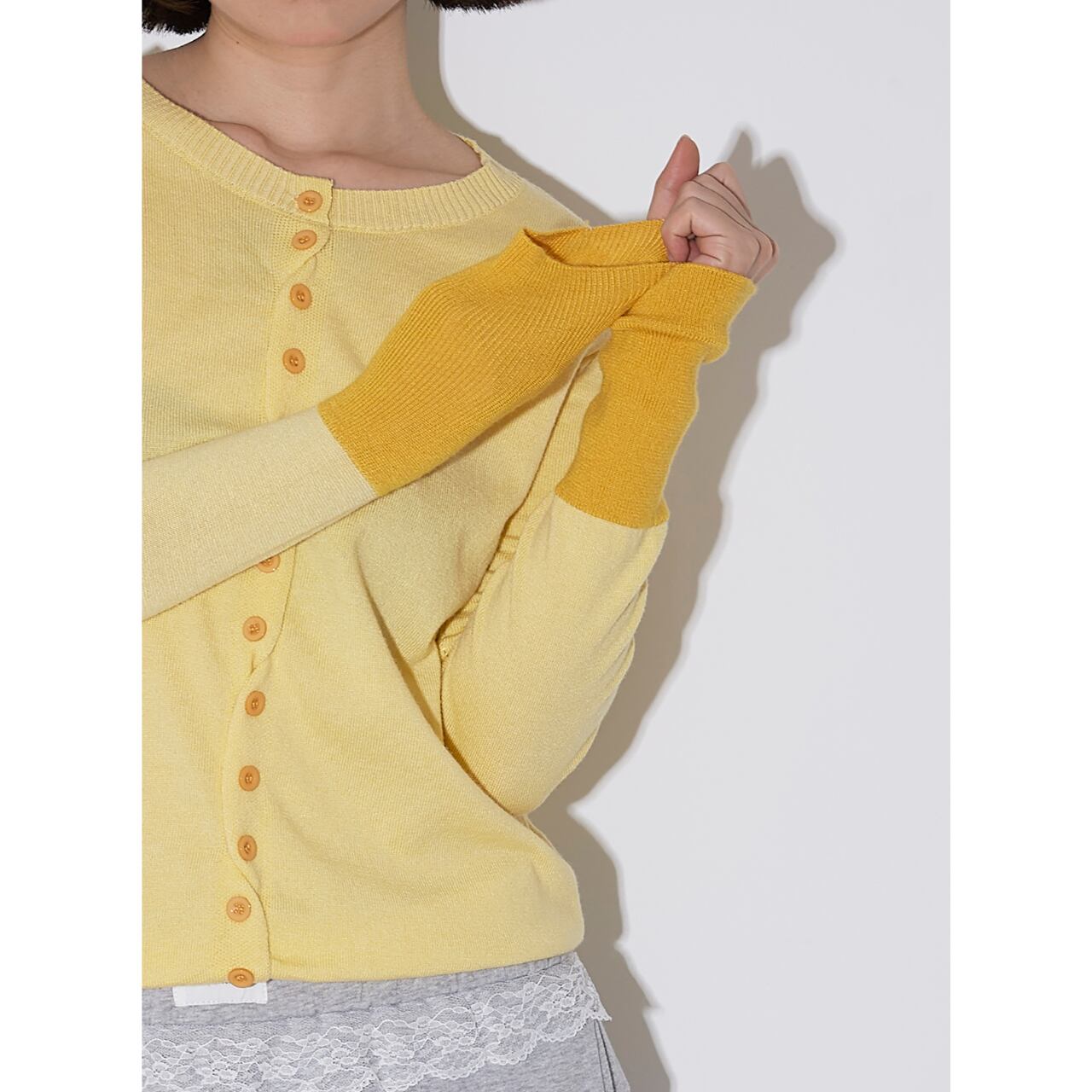 【 バイカラーボタンフロントカーディガン 】B00015
