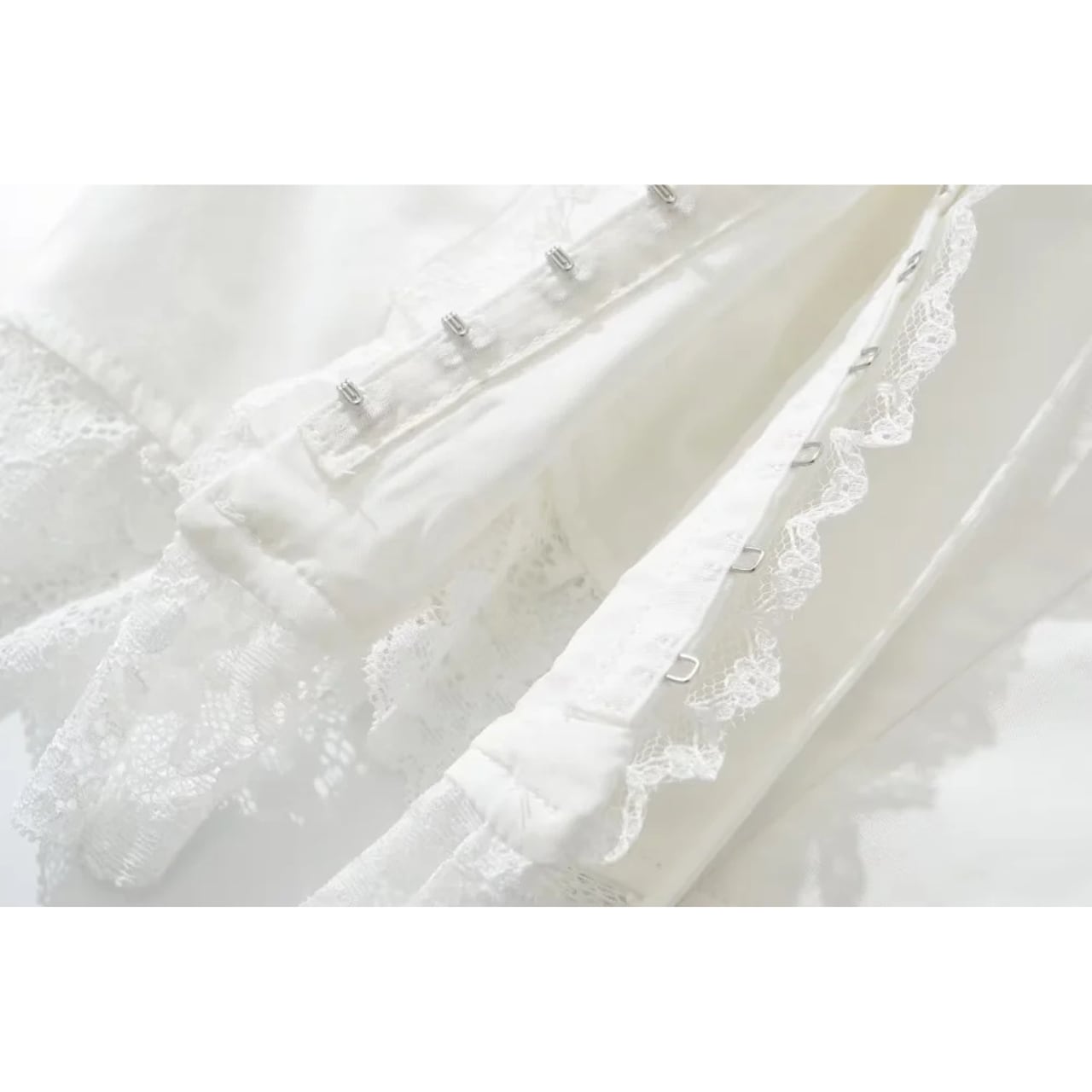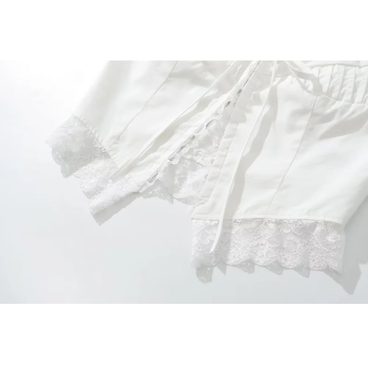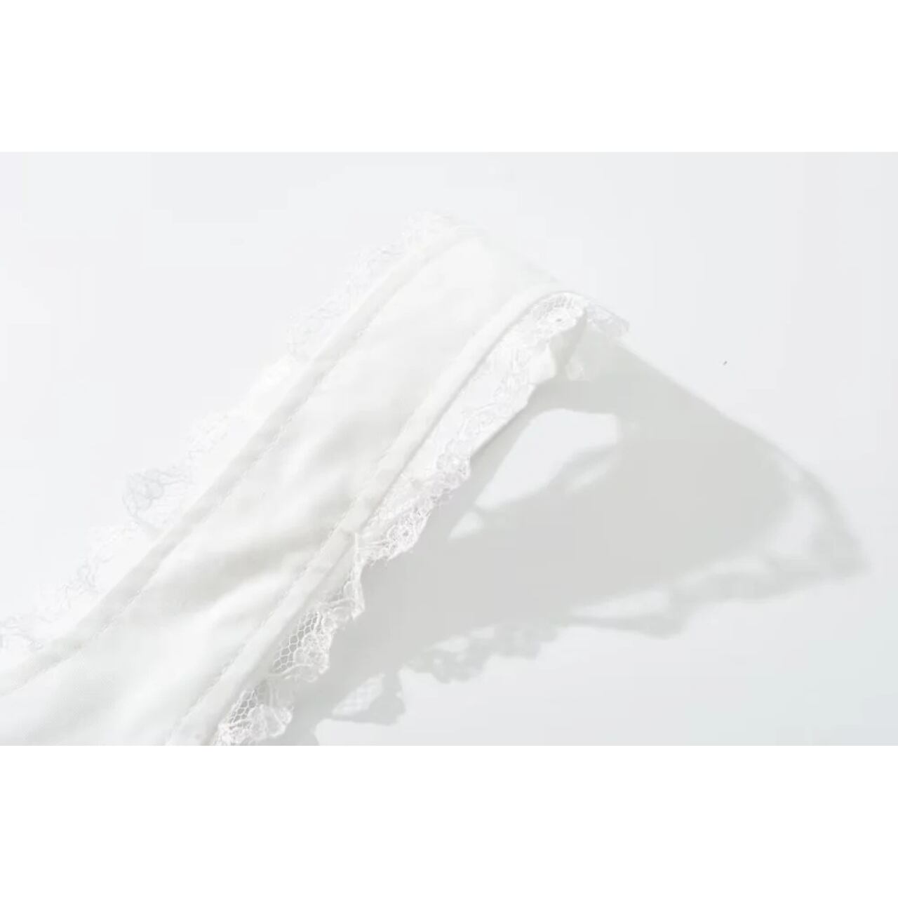 レーストリムが施されたクロップド丈のノースリーブトップスです。