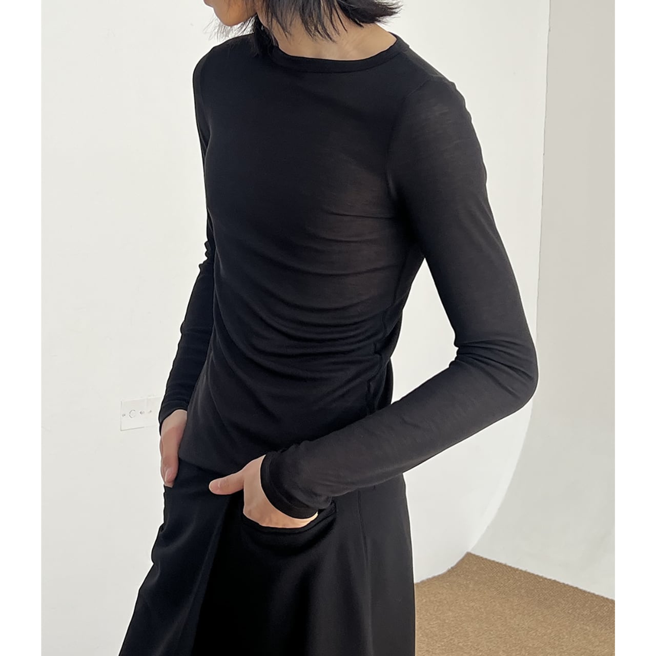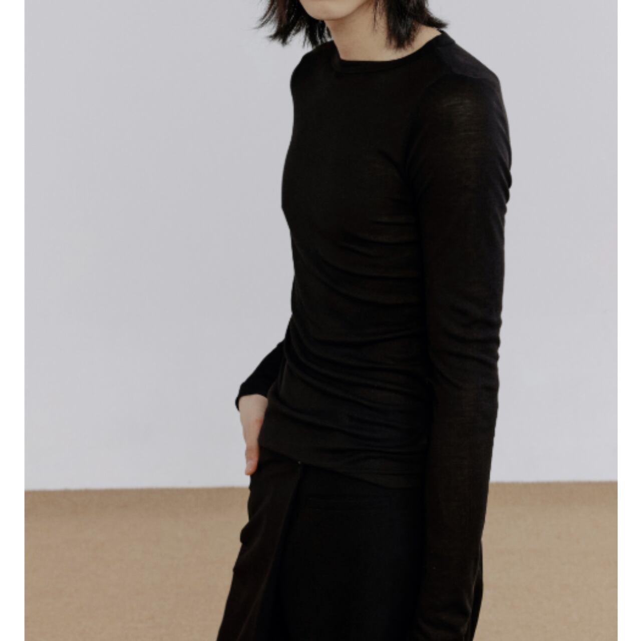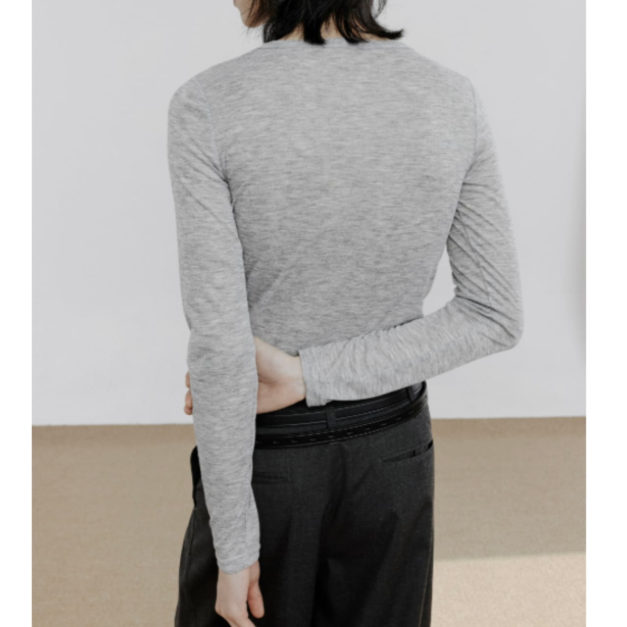 シンプルで洗練された印象を与える長袖クルーネックカットソー。