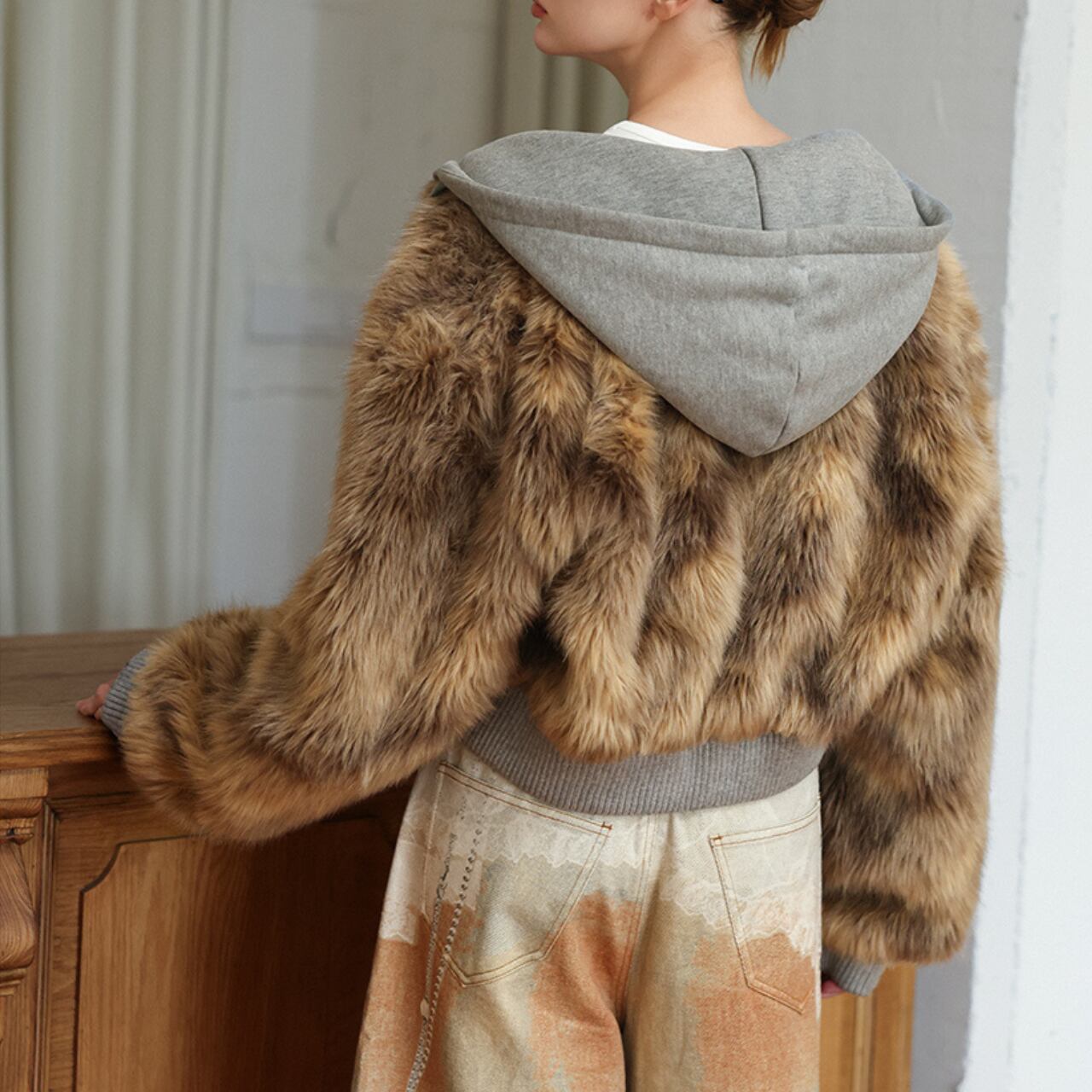 【ジップアップ長袖ボアショート丈ジャケット 】B30038