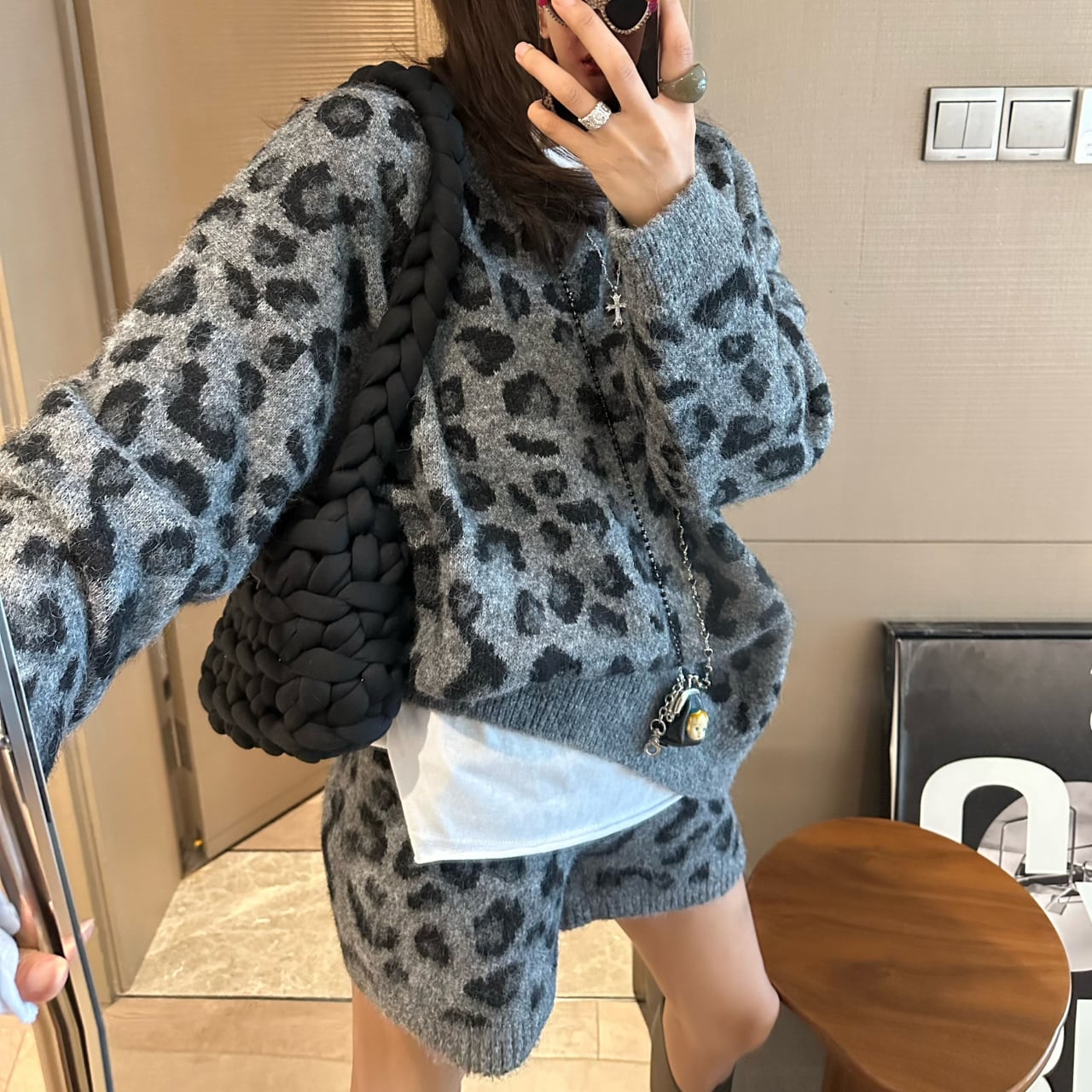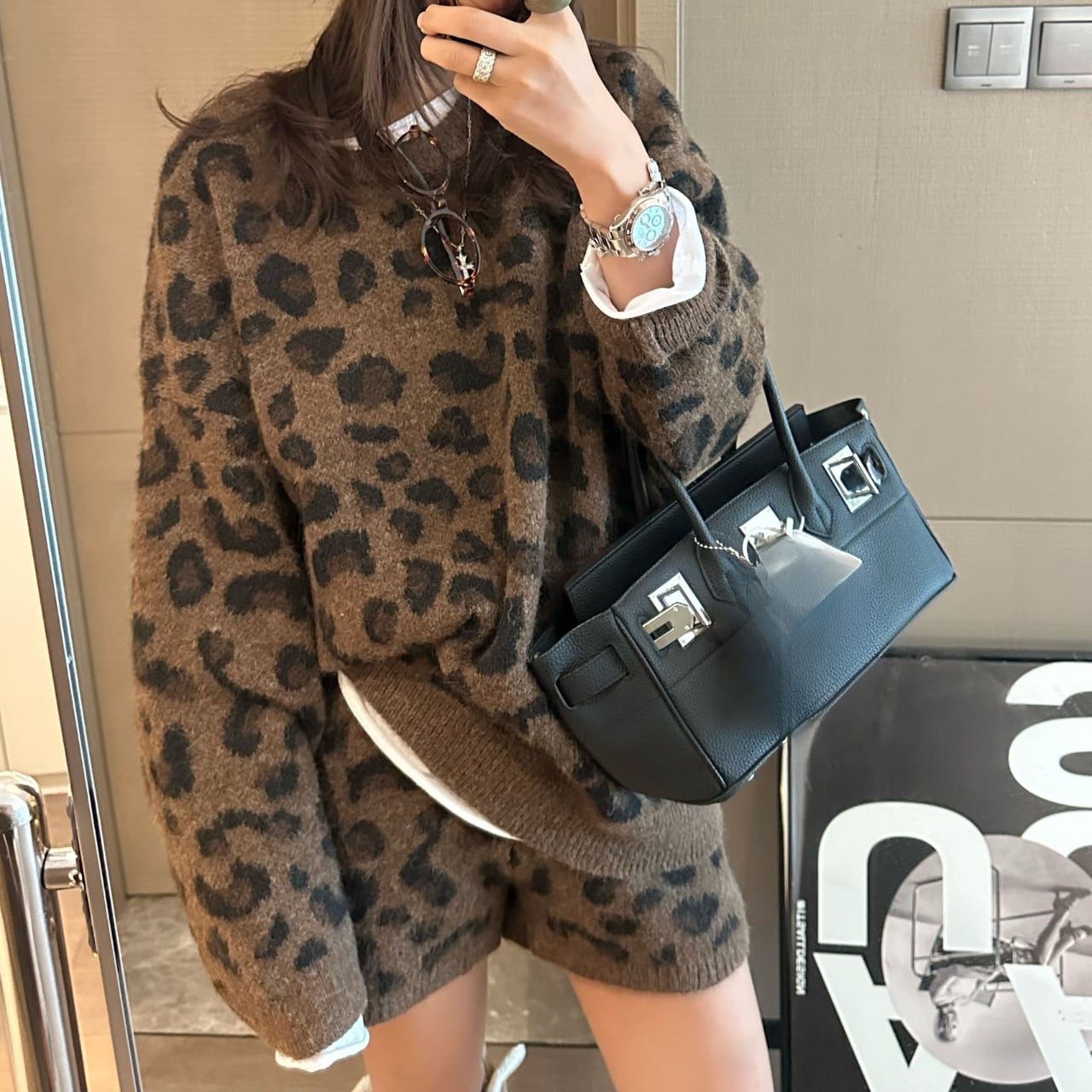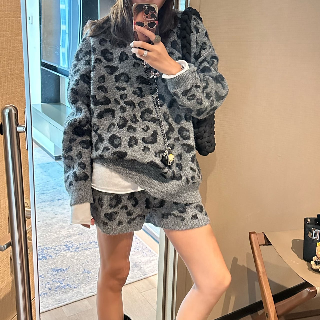 【長袖レオパード柄ニットセットアップ】B30041
