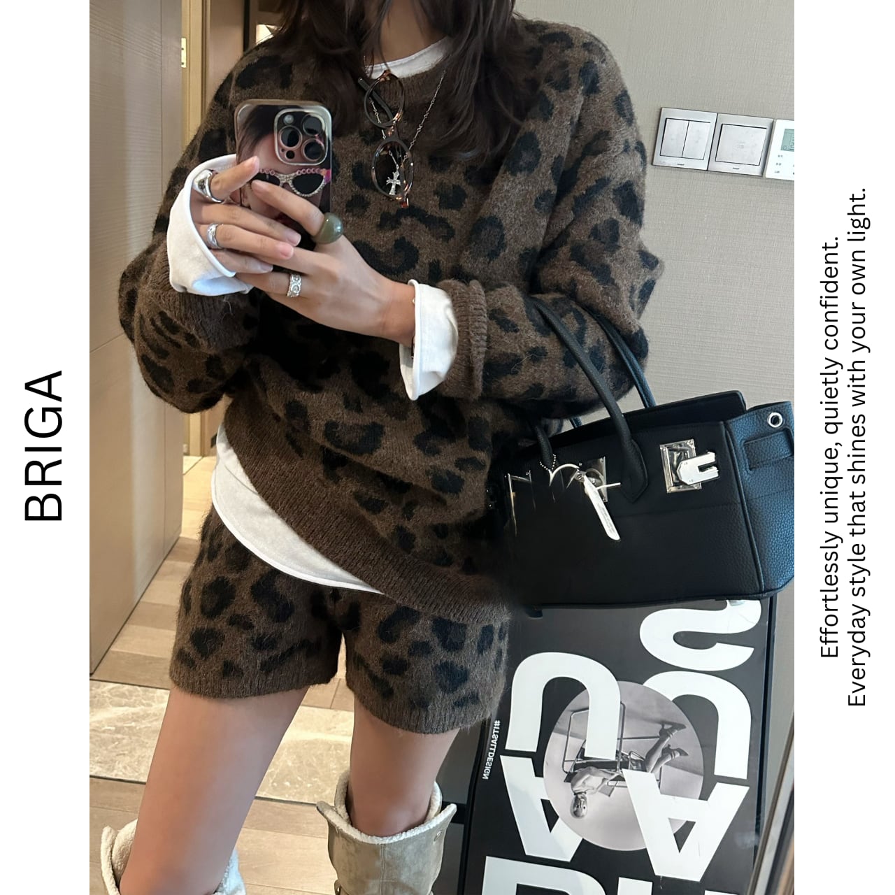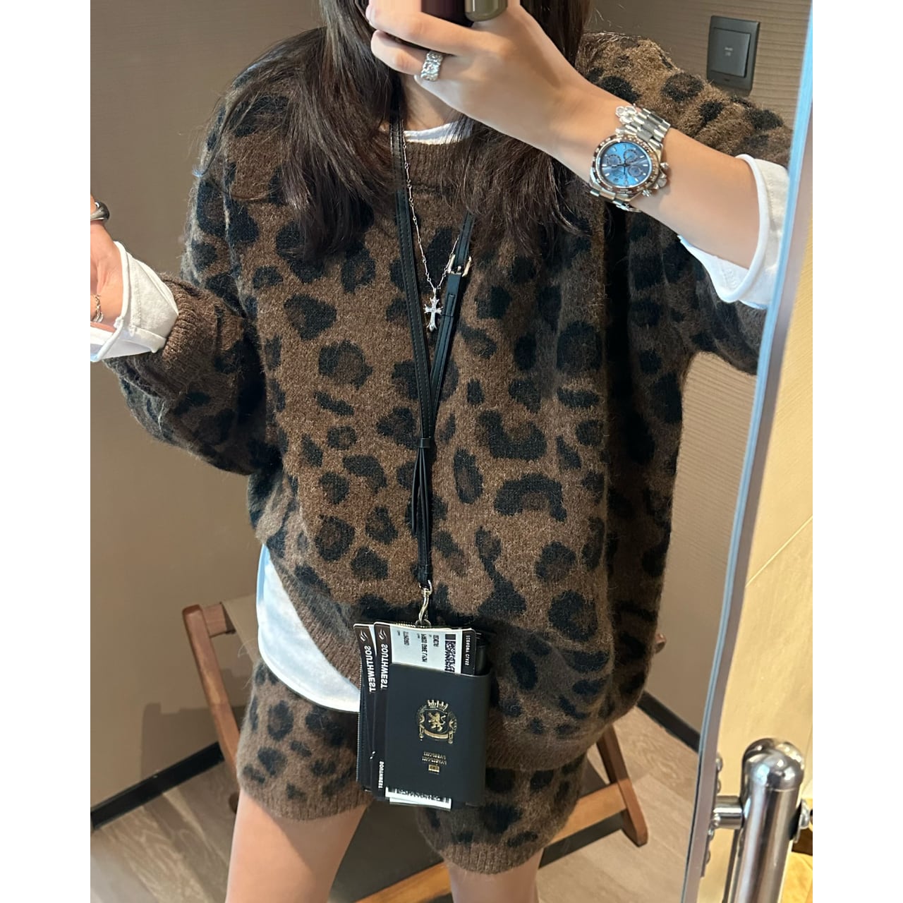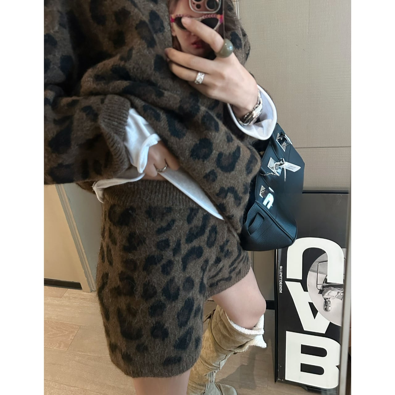 【長袖レオパード柄ニットセットアップ】B30041