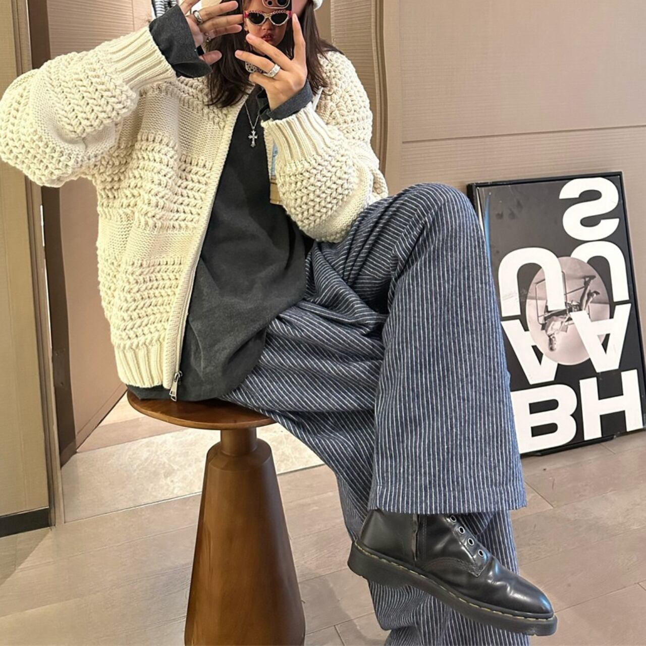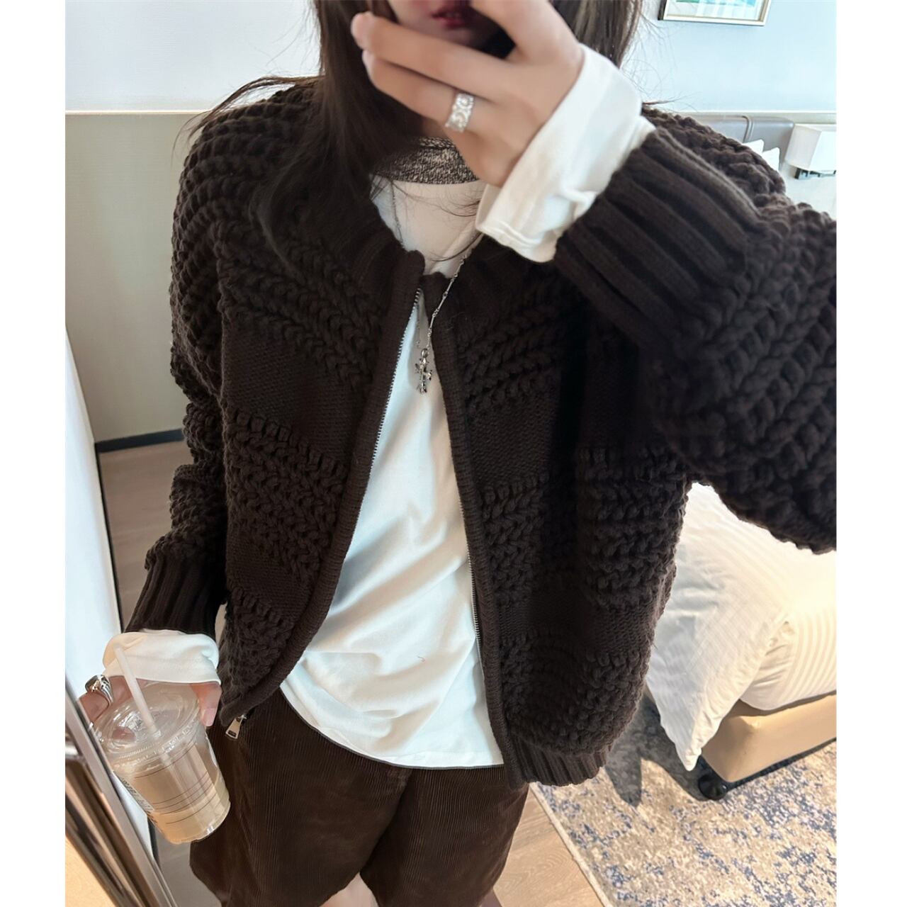 トレンドのクロップド丈で、スタイルアップ効果が期待できるニットカーディガンです。