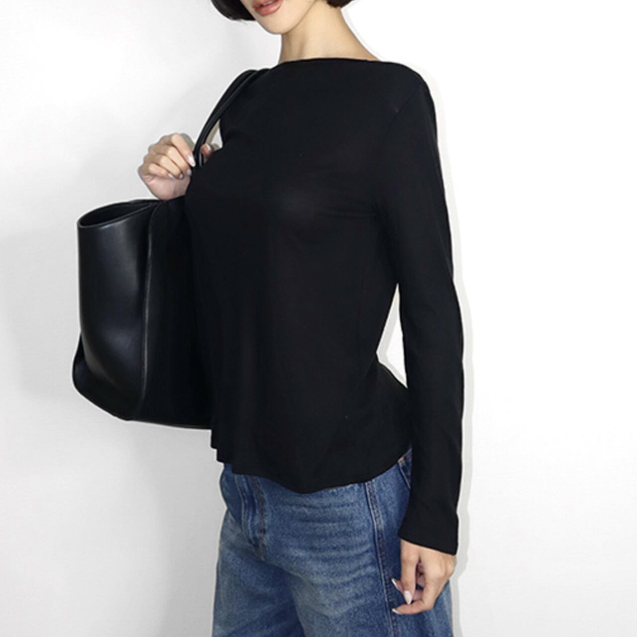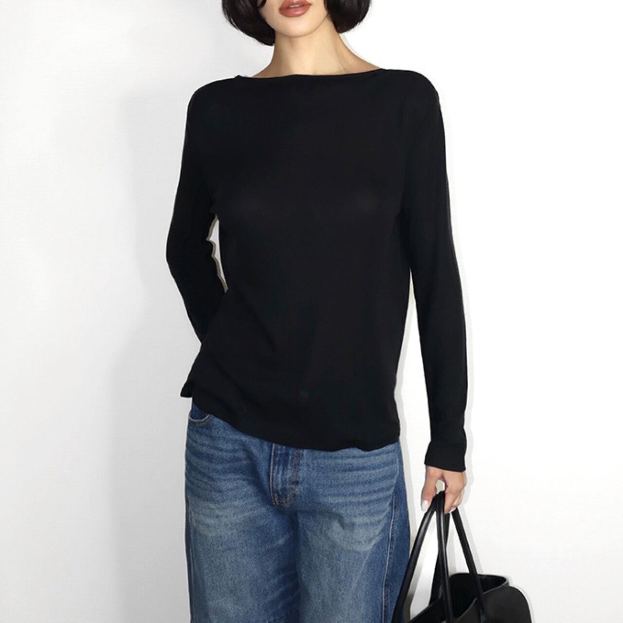 バックオープンのデザインが特徴的な長袖カットソー。