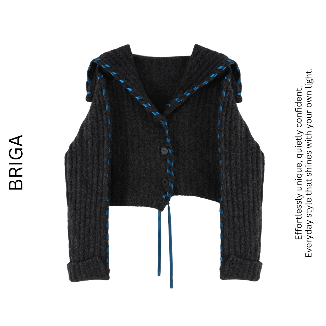 【ボタンフロントクロップド丈ニットジャケット 】B30052