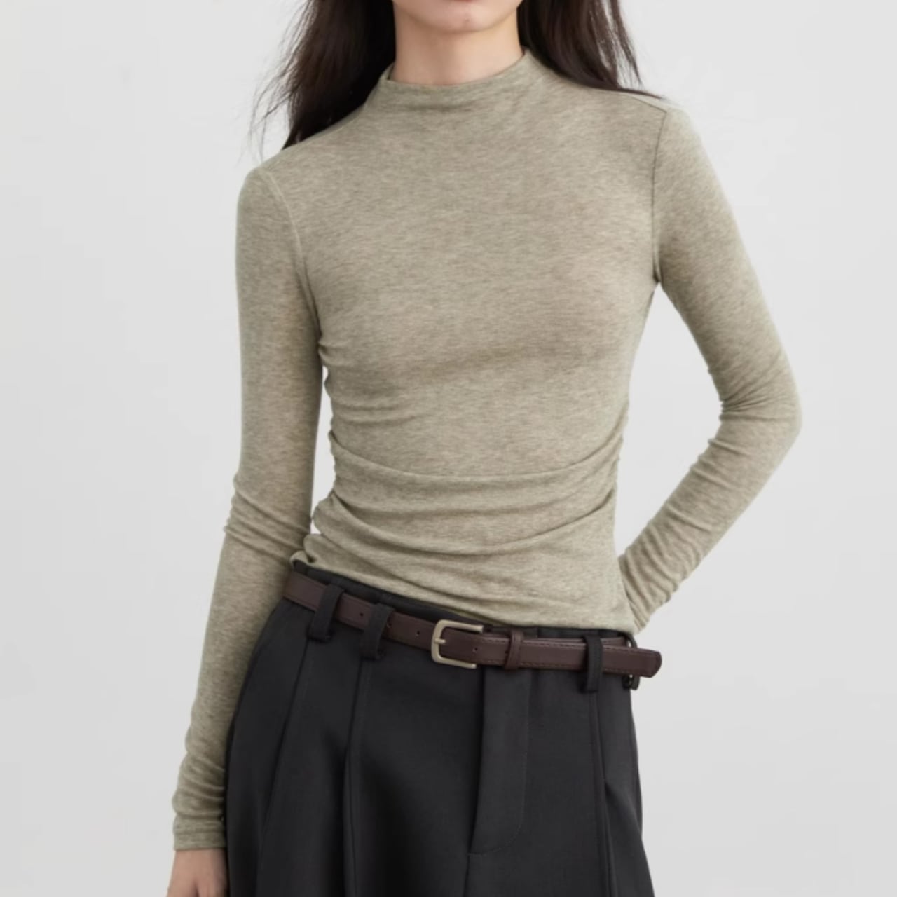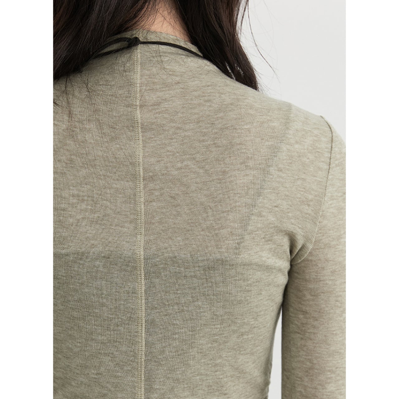 程よいネックの高さが上品な印象を与える長袖トップス。