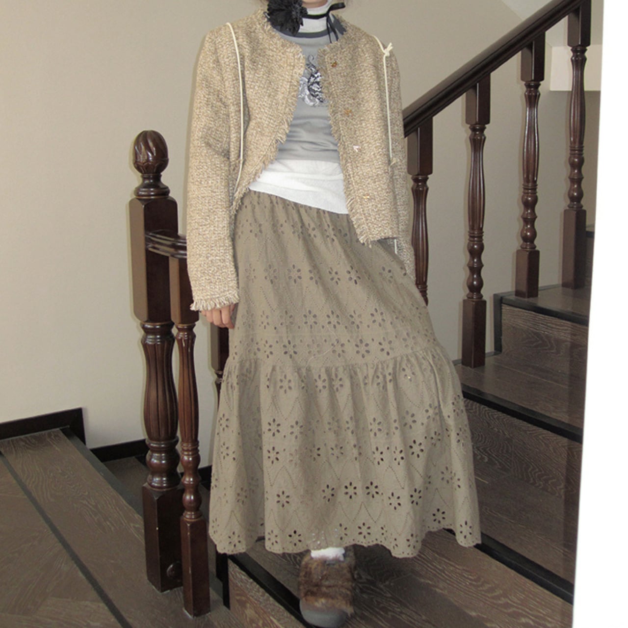 リラックス感のあるマキシ丈スカート。