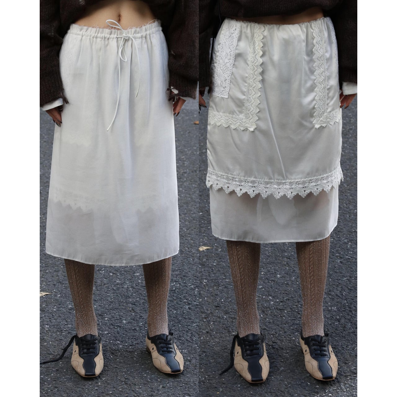 裾とパッチポケットにあしらわれたレースが、さりげない甘さをプラスします。
