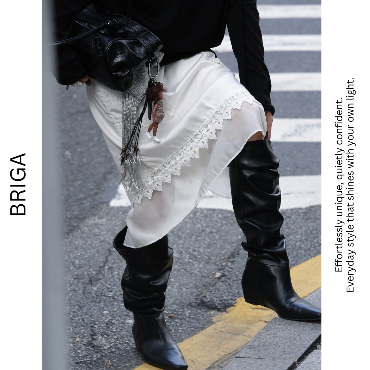 シンプルなトップスと合わせれば、スカートのデザインが引き立ち、洗練された印象に。