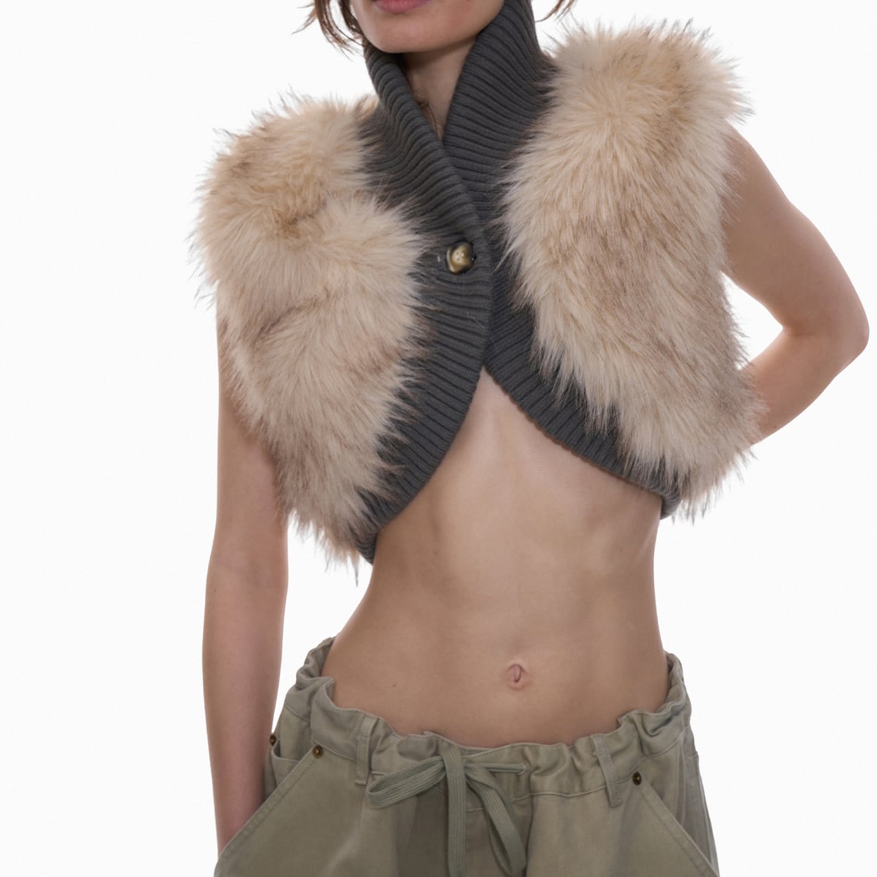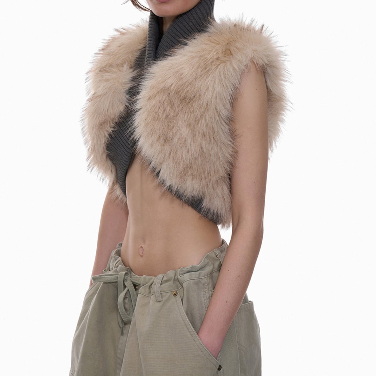 【ファーパネルハイネックショート丈ベスト 】B30062