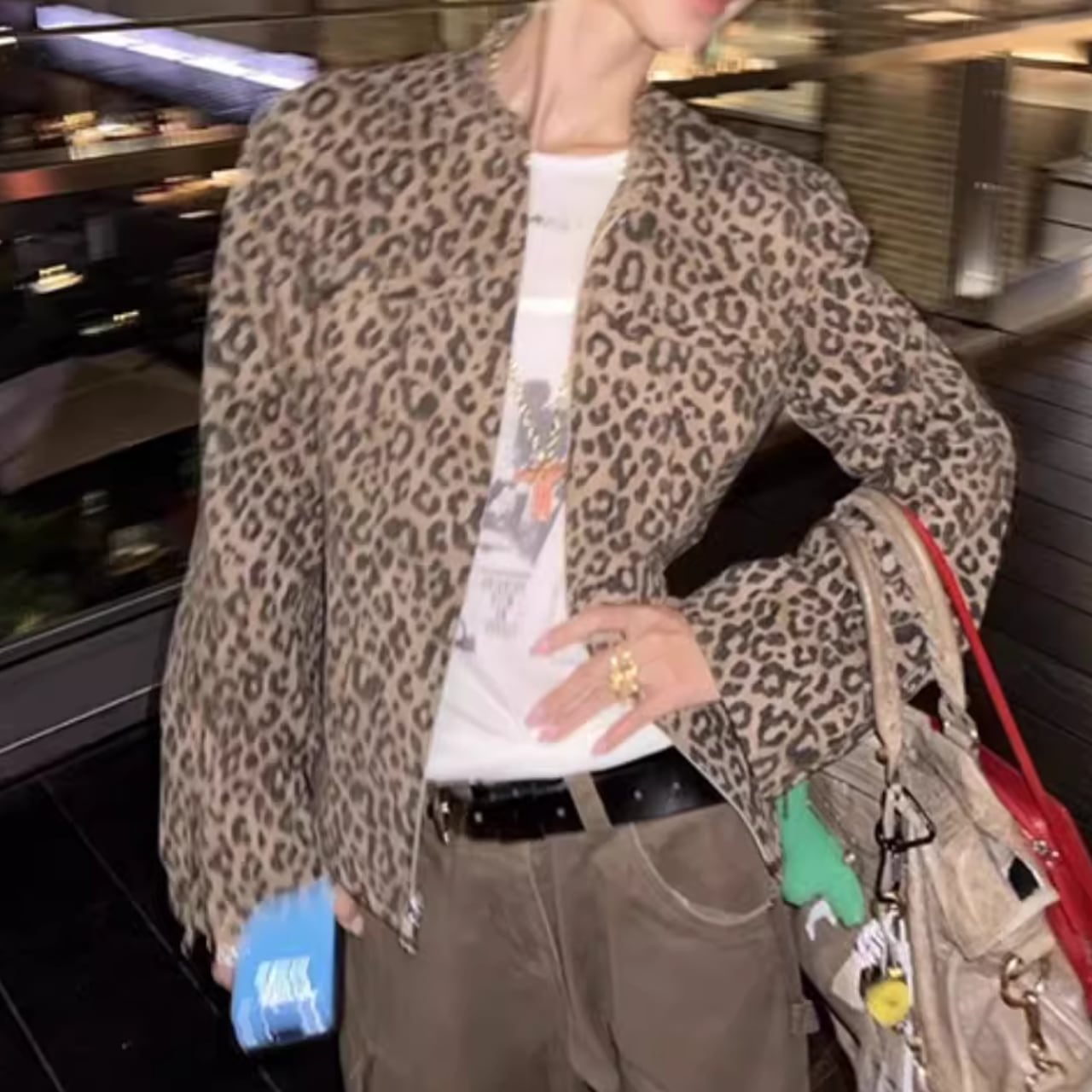 【ジップアップ長袖レオパード柄ジャケット 】B30029