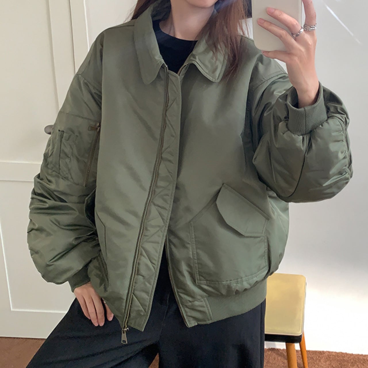 オーバーサイズのシルエットが魅力的なブルゾン。