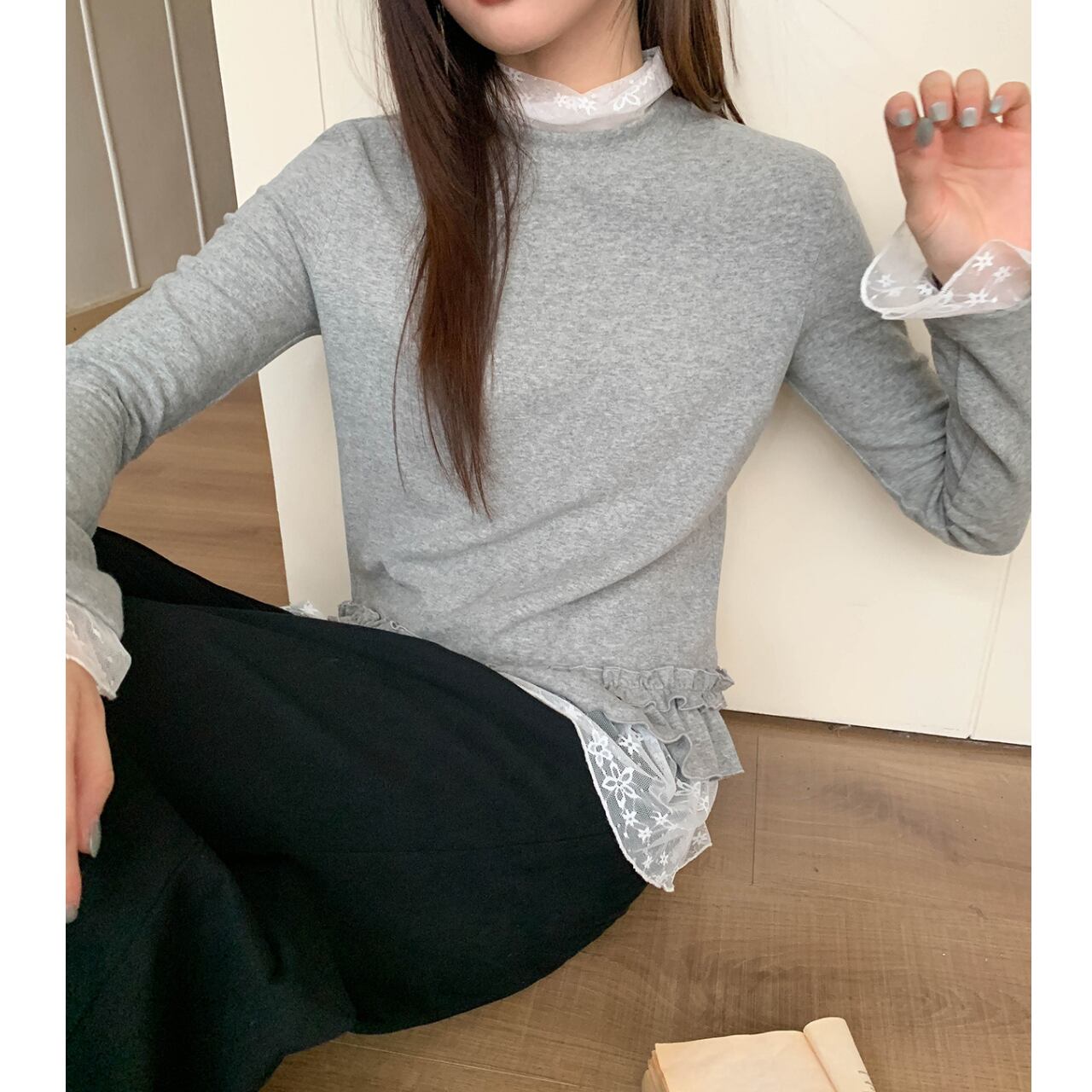袖口と裾から覗くレースが、フェミニンな印象を与えます。