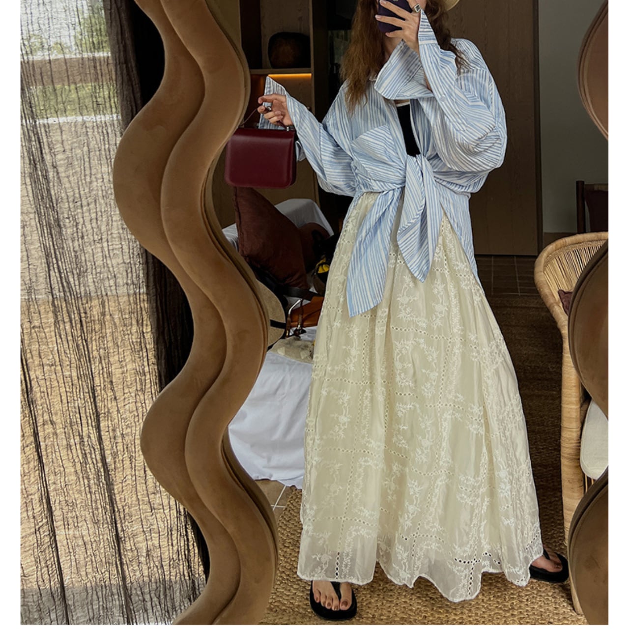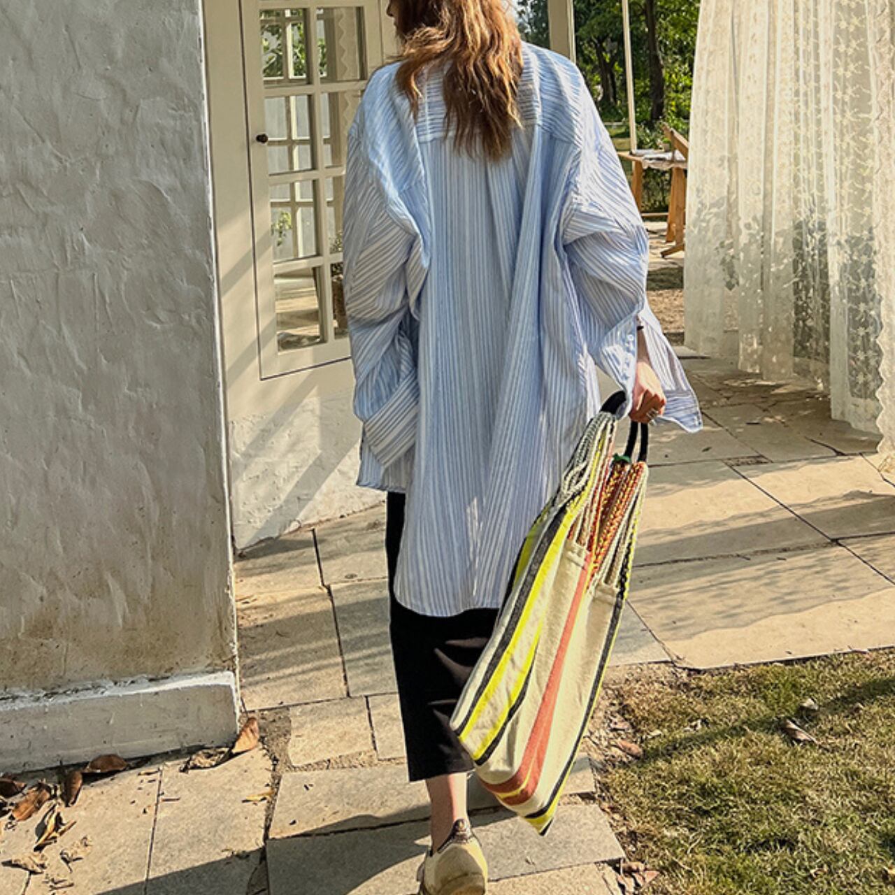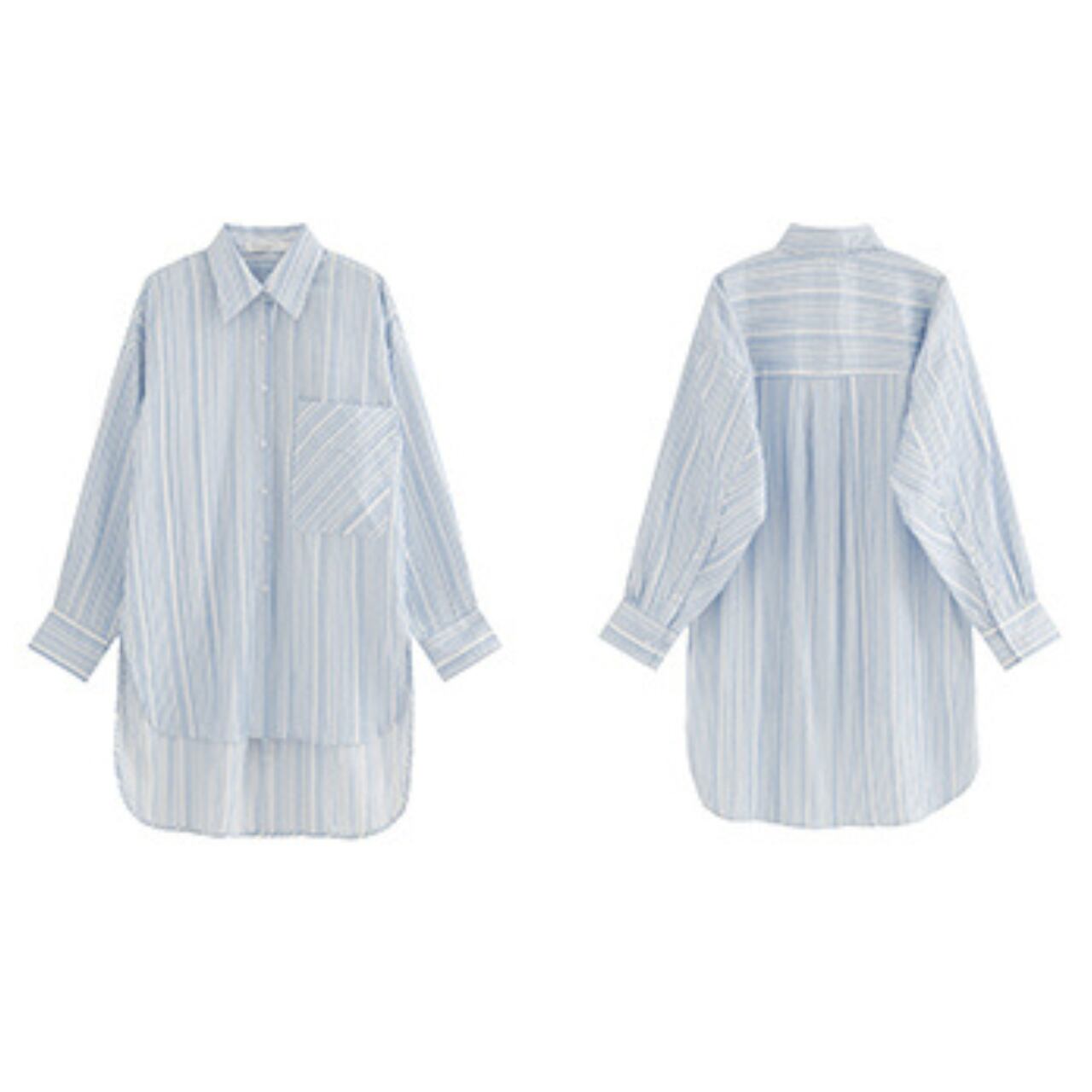 【ストライプ柄ロング丈長袖シャツ 】B00064