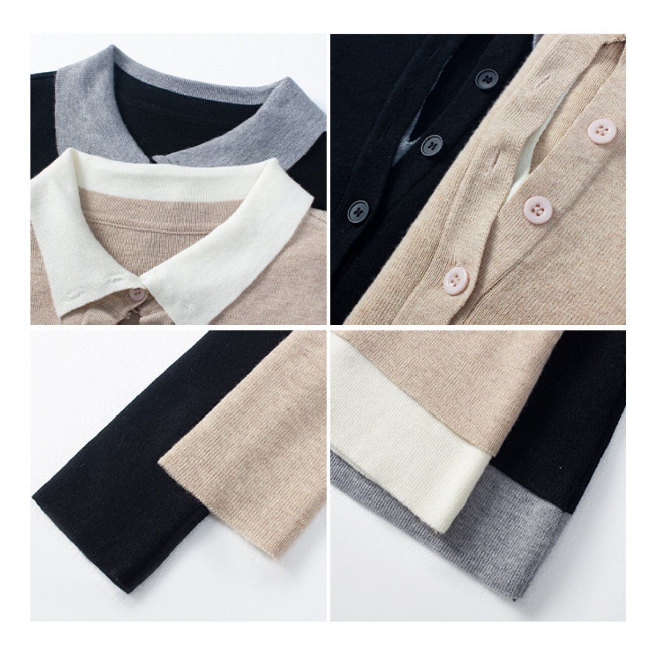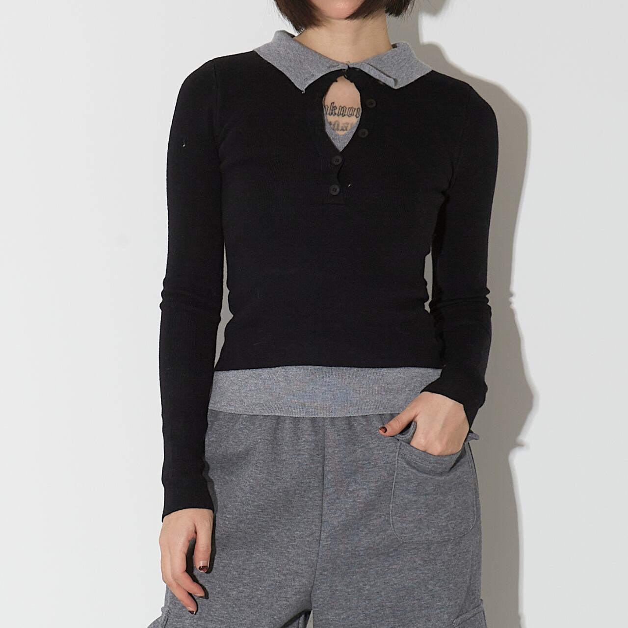 【長袖オープンカラーニットポロシャツ 】B00068
