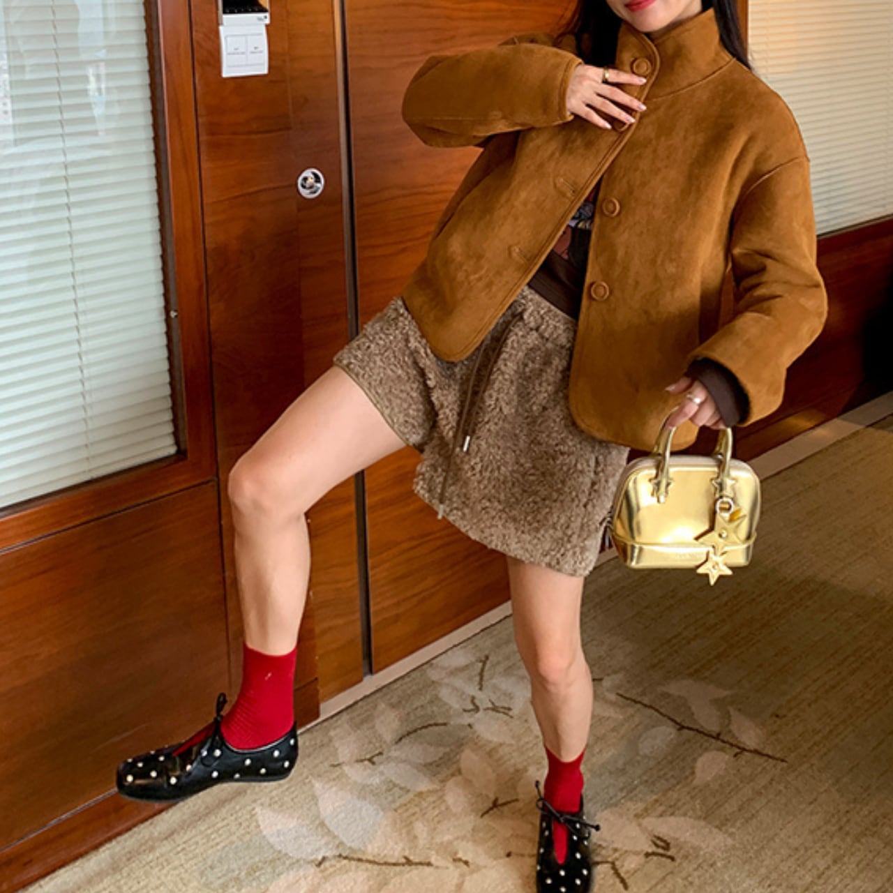 遊び心のあるスタイリングにぴったりのファーハーフパンツ。