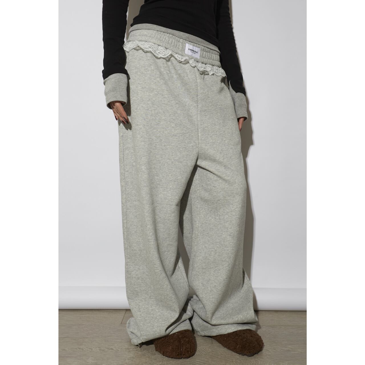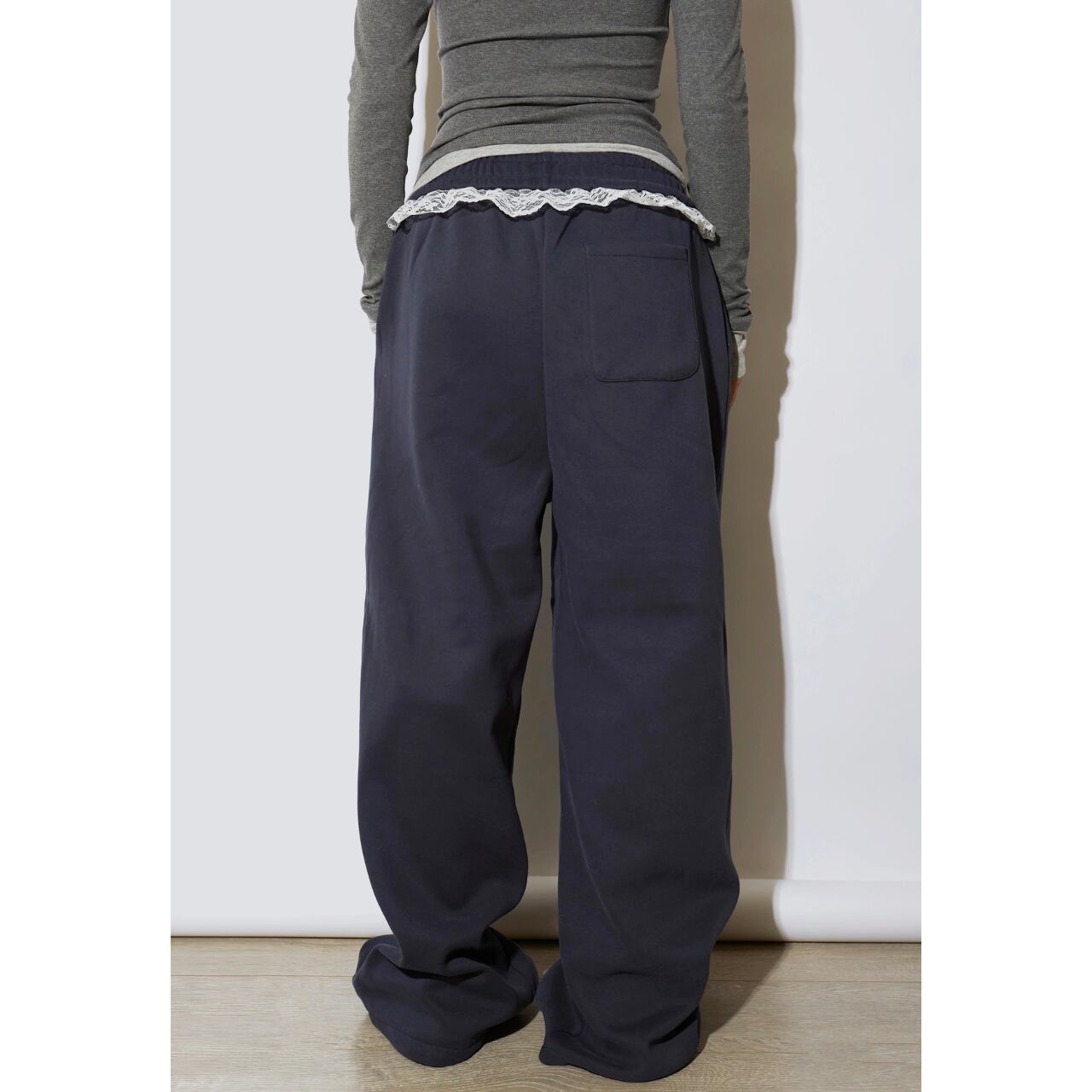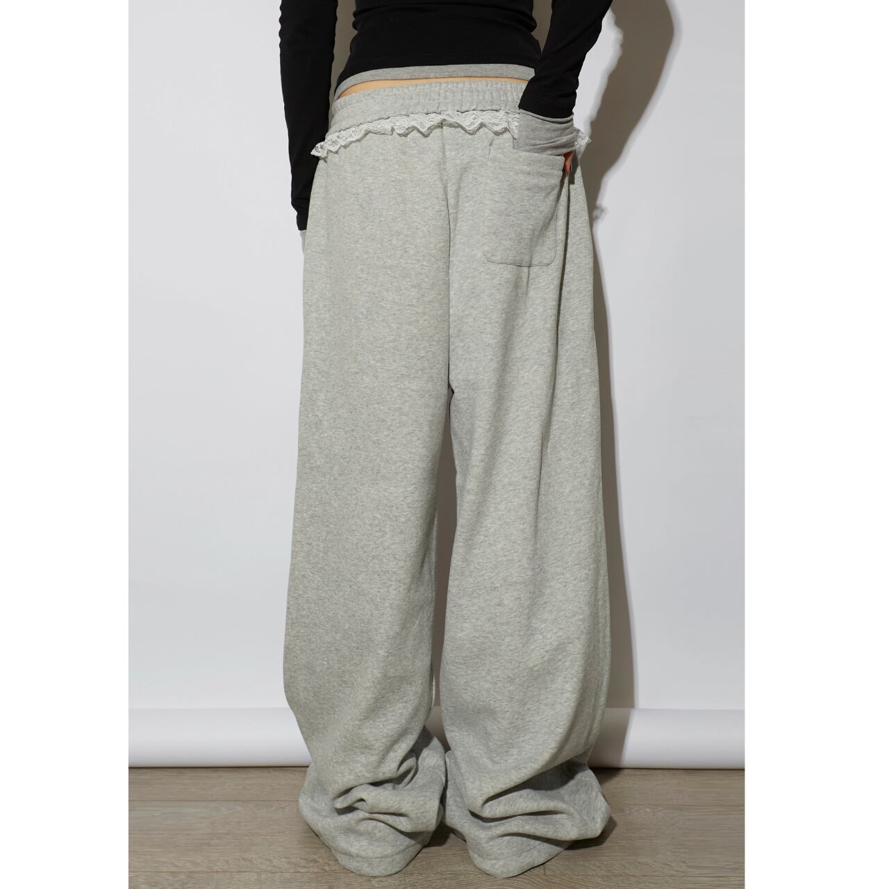 【レース付ワイドスウェットパンツ 】B10063
