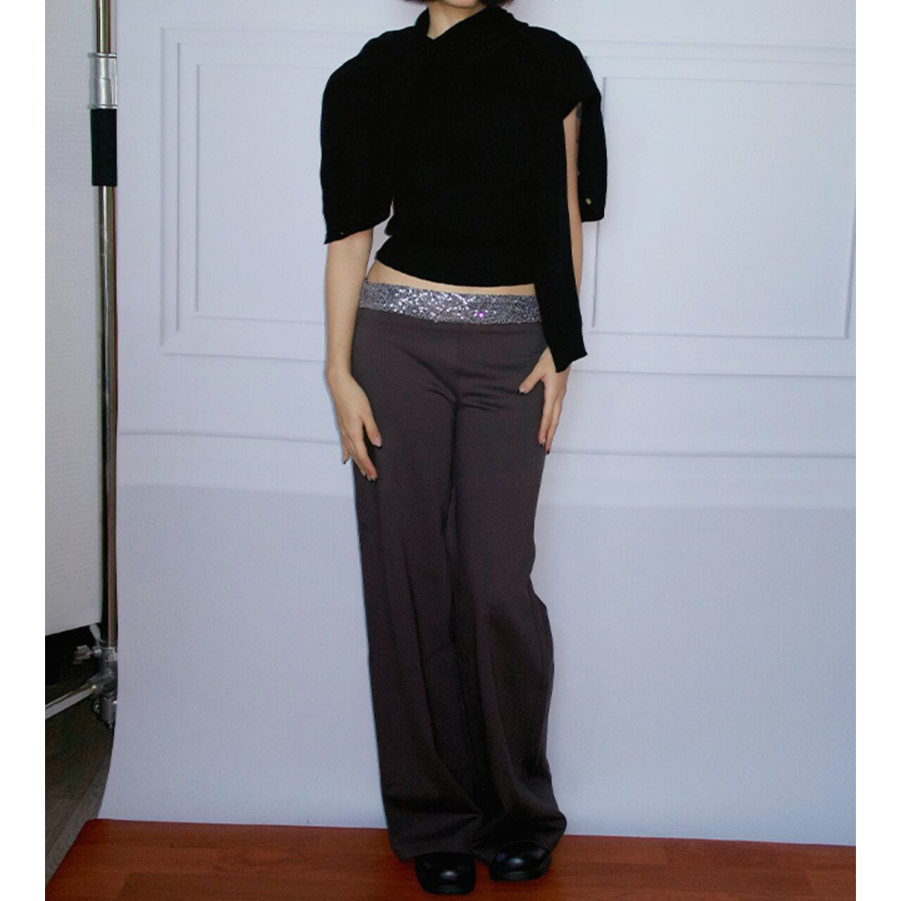 【スパンコールウエストワイドパンツ 】B10064