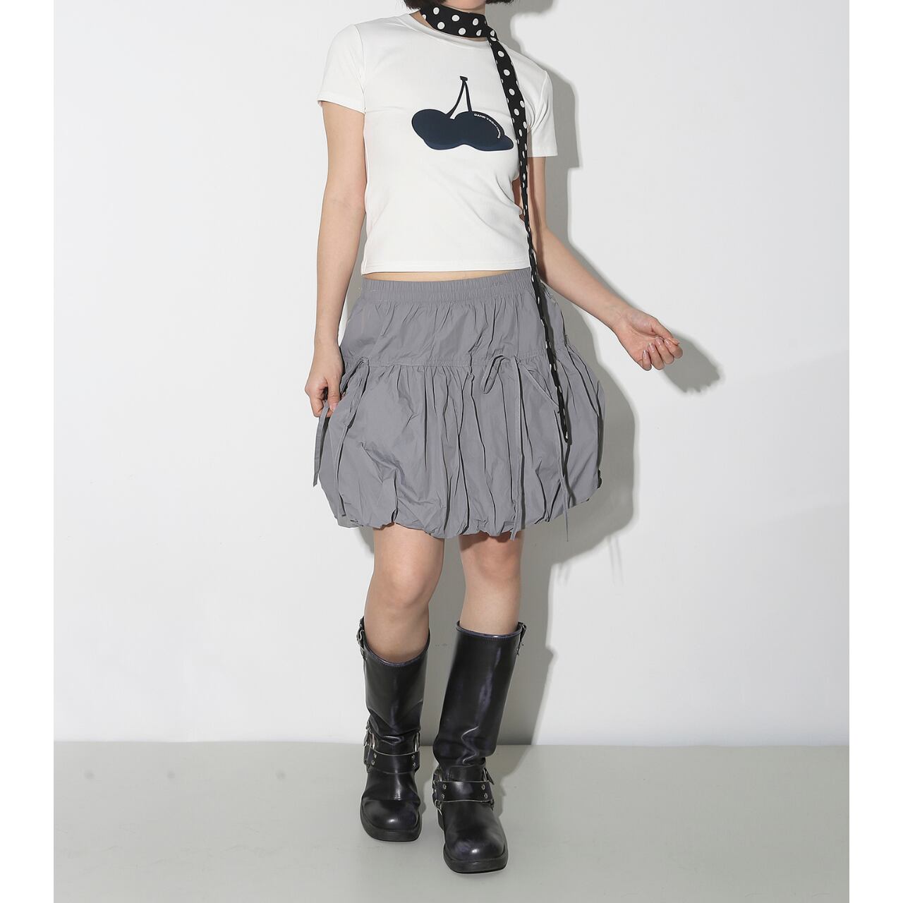 ふんわりとしたティアードデザインが魅力のミニスカート。