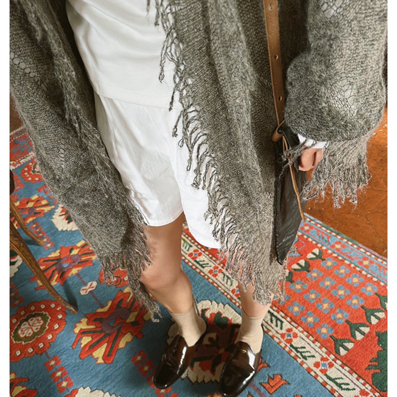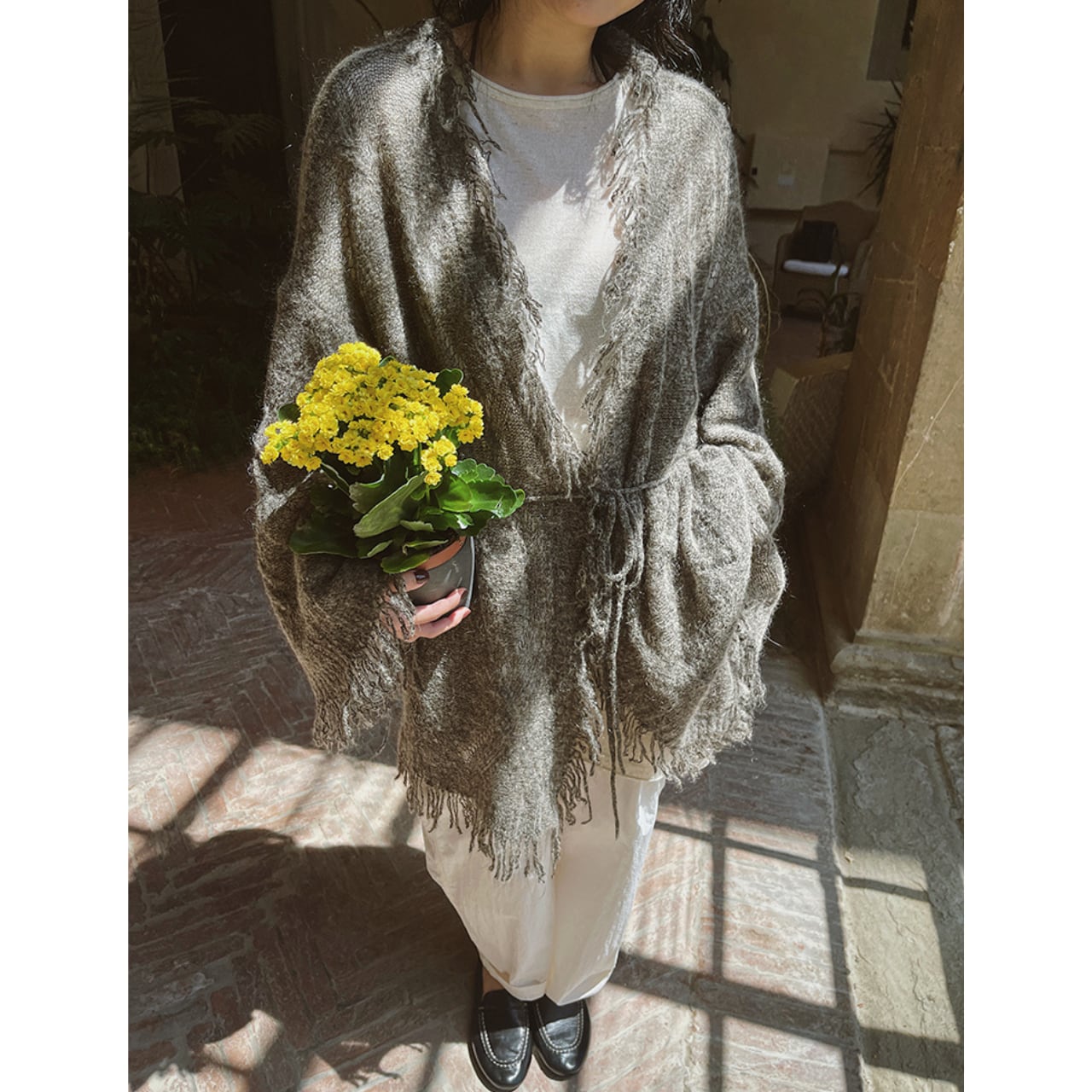 いつものコーディネートにトレンド感をプラスする、フリンジ付きのニットカーディガン。