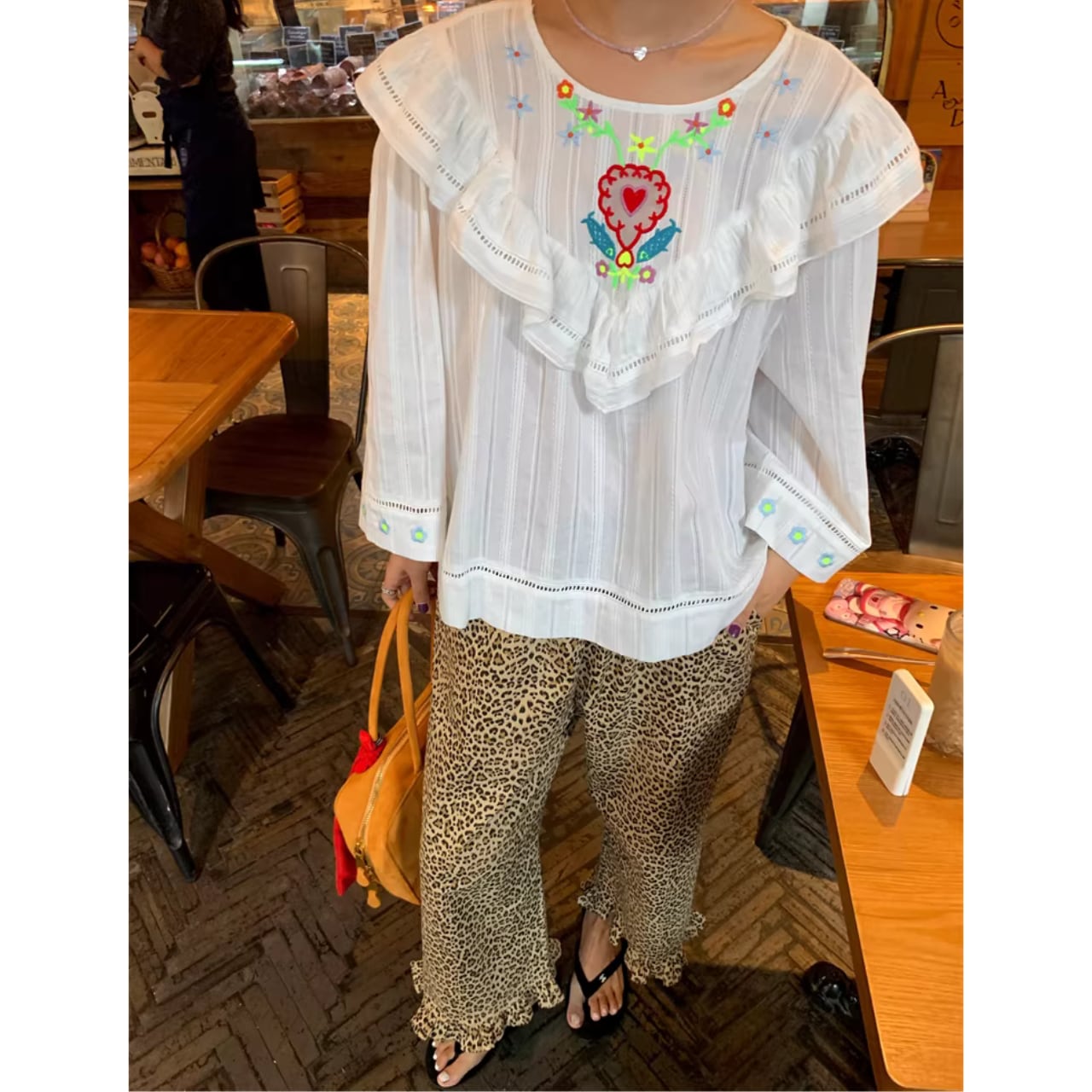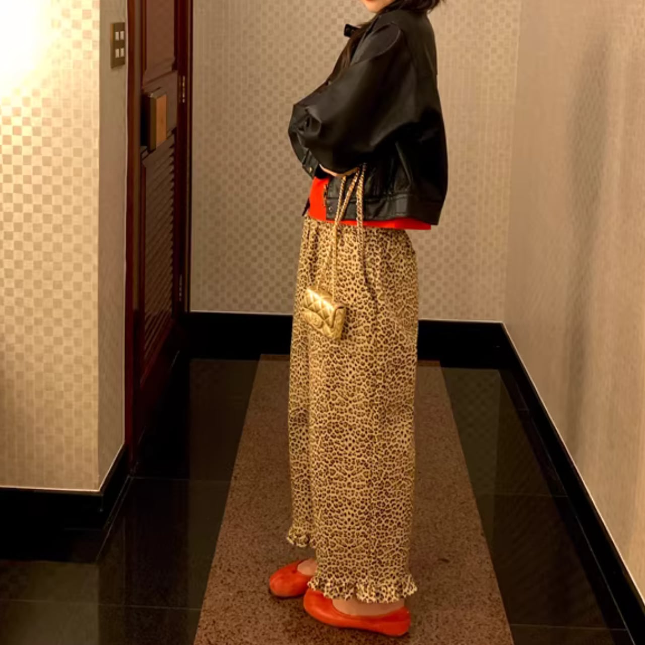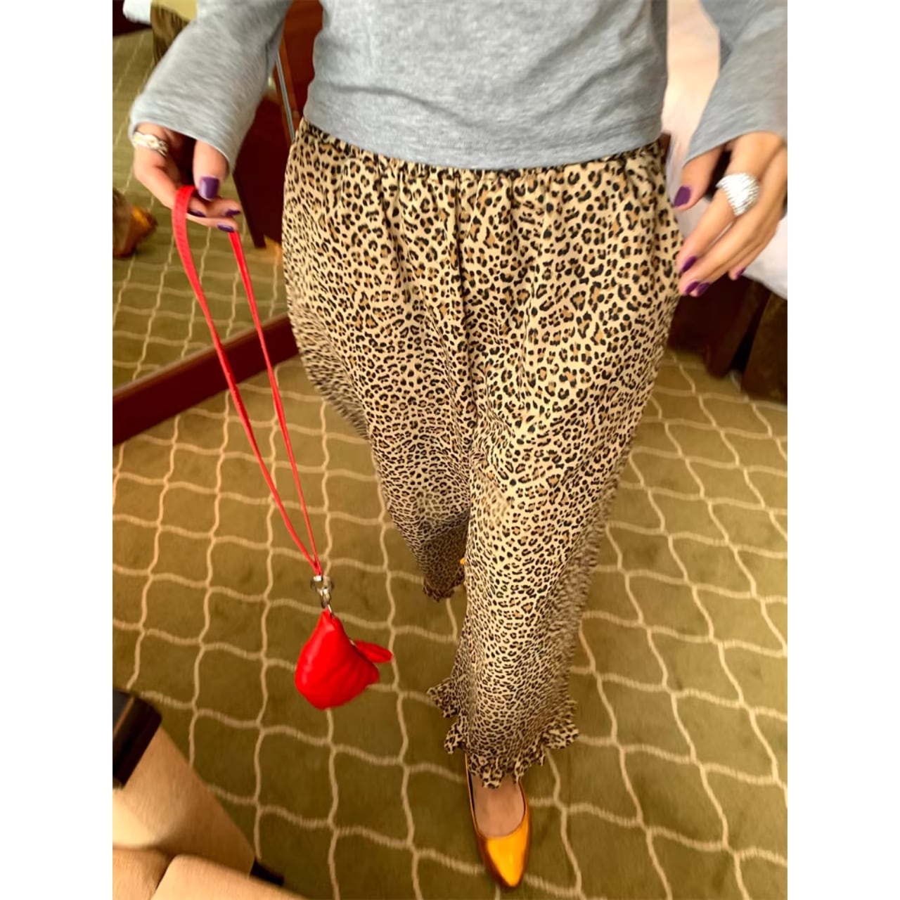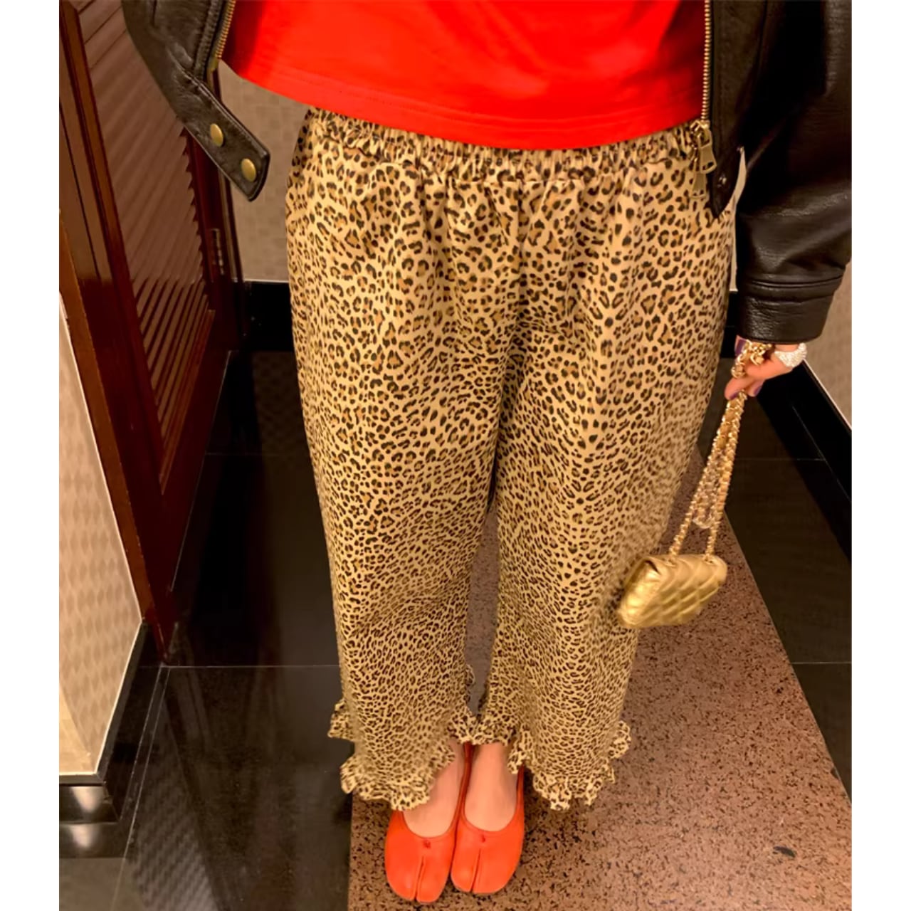 【レオパード柄裾フリルワイドパンツ 】B10068