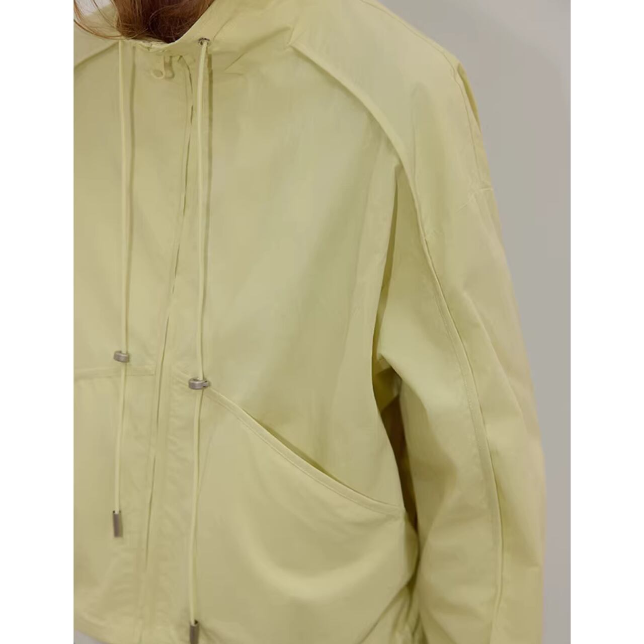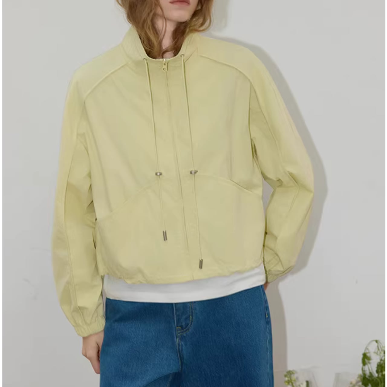 ドローストリングがアクセントになった、腰丈の長袖ブルゾンです。