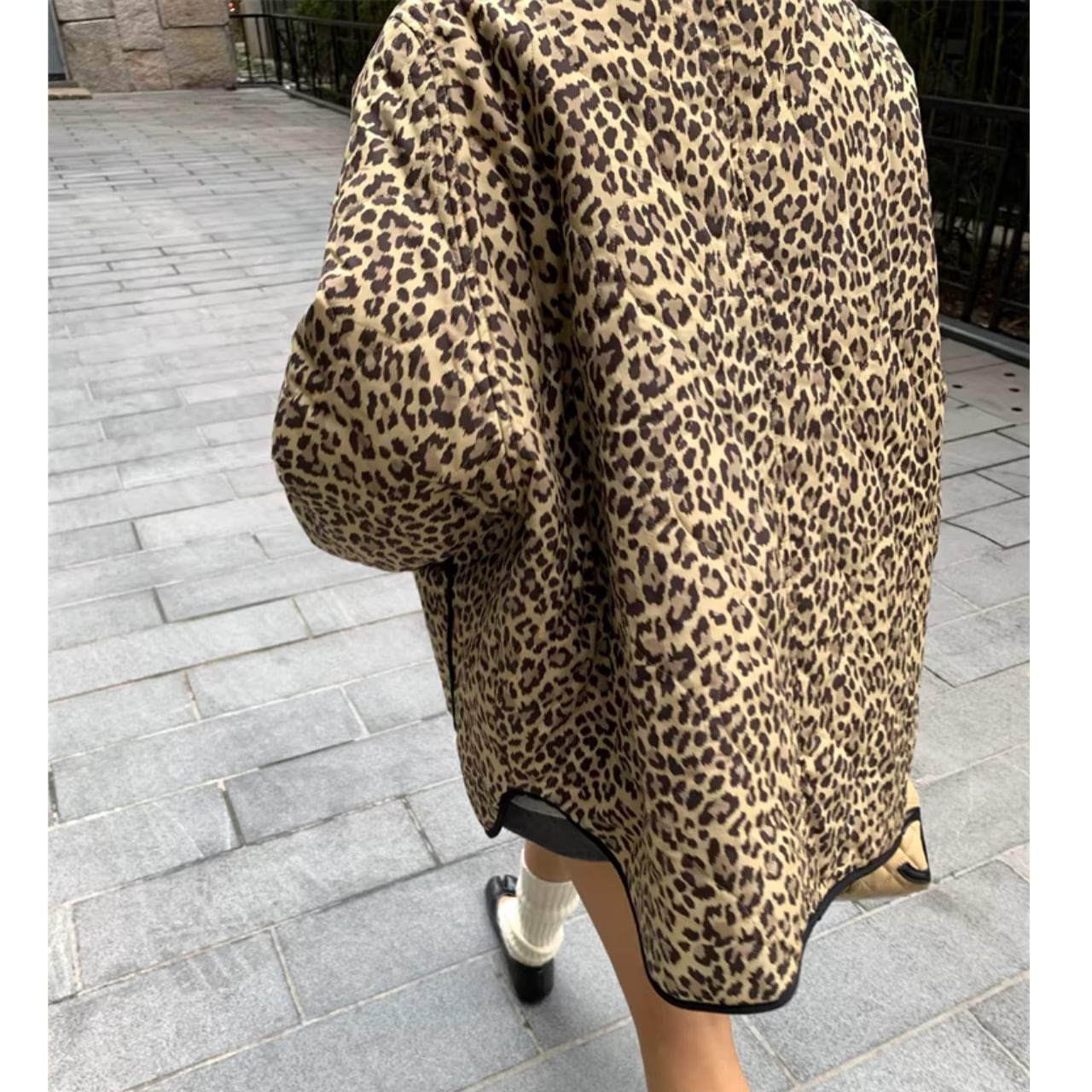 レオパード柄が目を引く中綿入りジャケットです。
