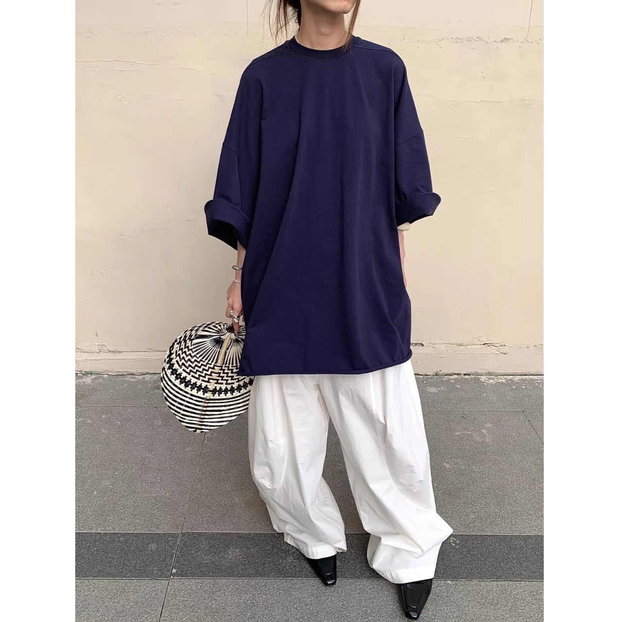【半袖ビッグシルエットロング丈 Tシャツ 】B00089