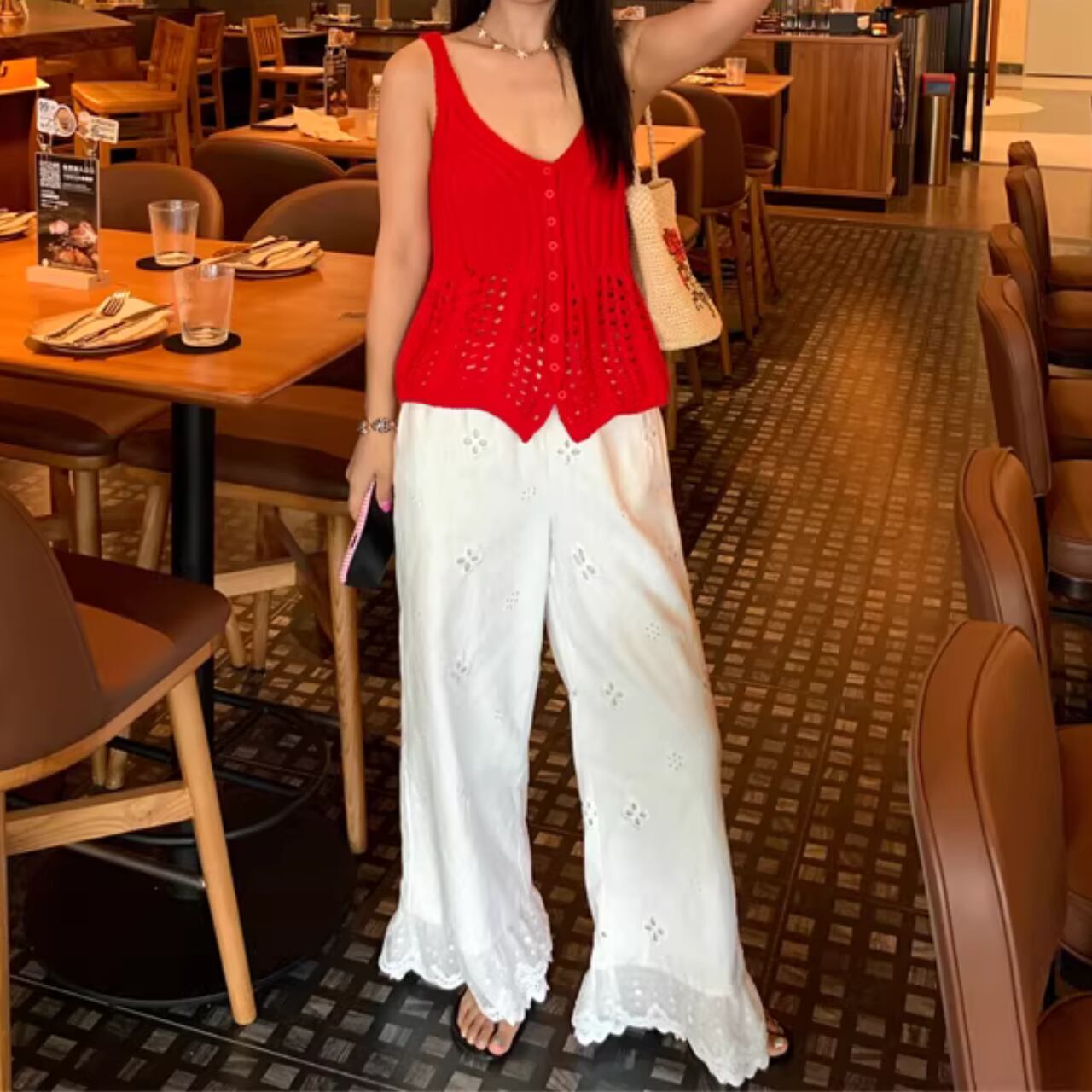 涼しげな素材感で、普段使いはもちろん、ちょっとしたお出かけにも活躍するアイテムです。