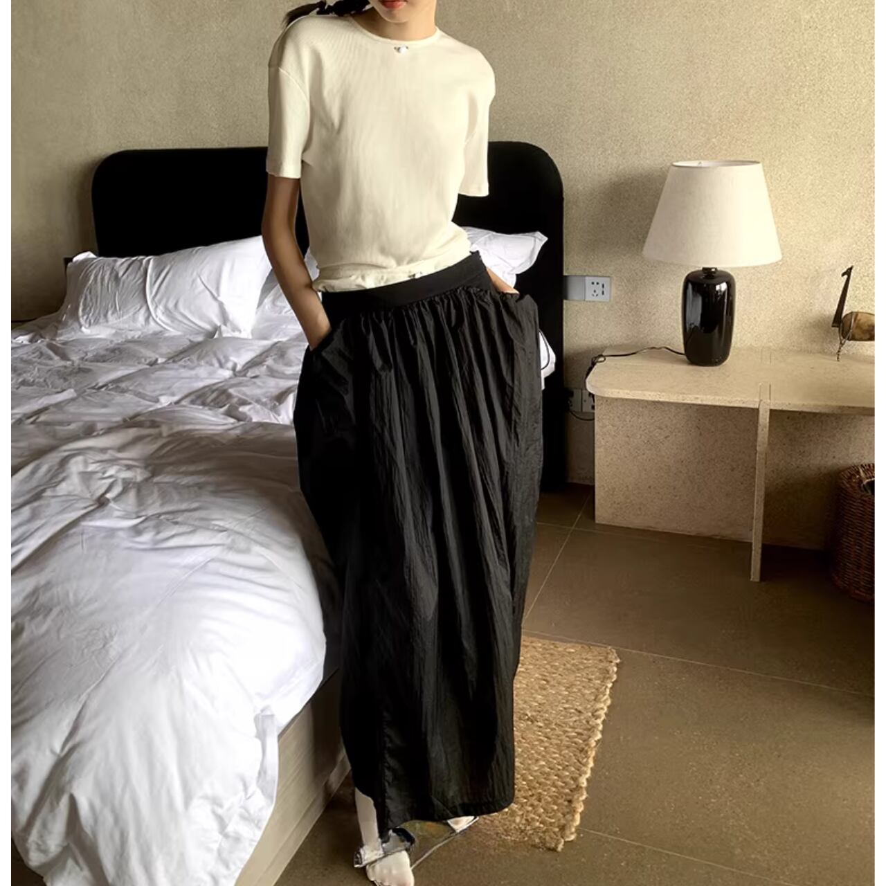 【ドローストリングギャザー入りスカート 】B10085