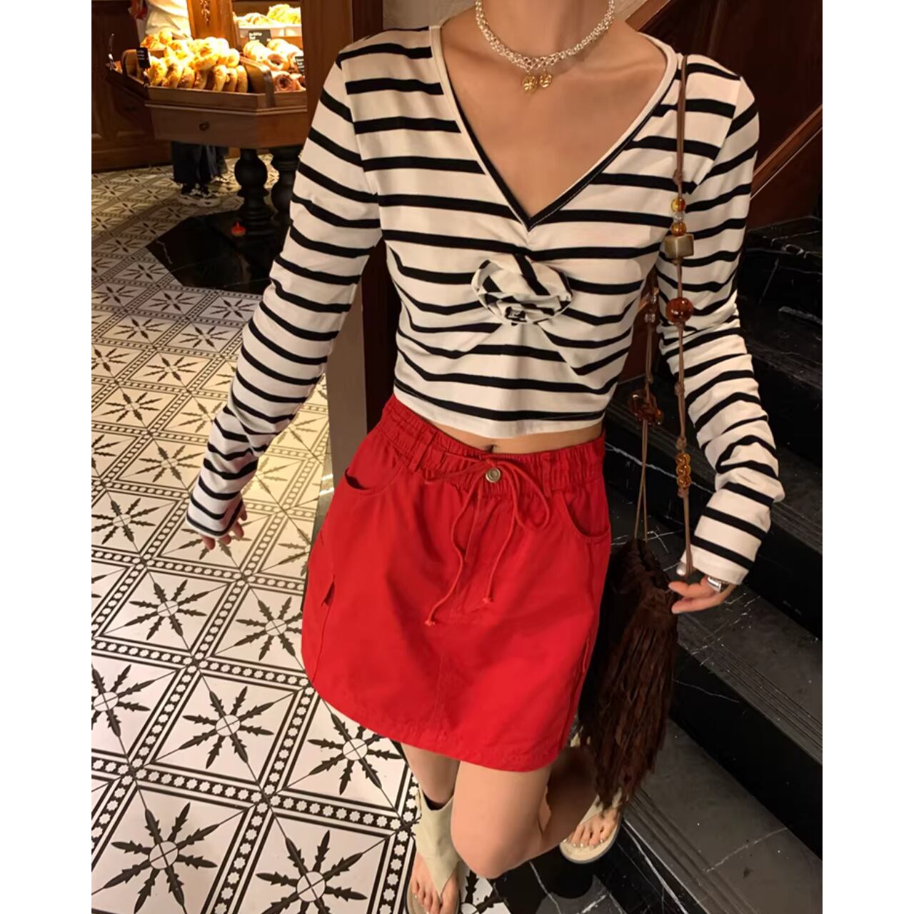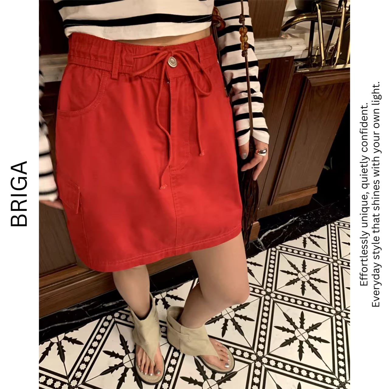 ミニ丈がコーディネートにほどよい抜け感をプラス。