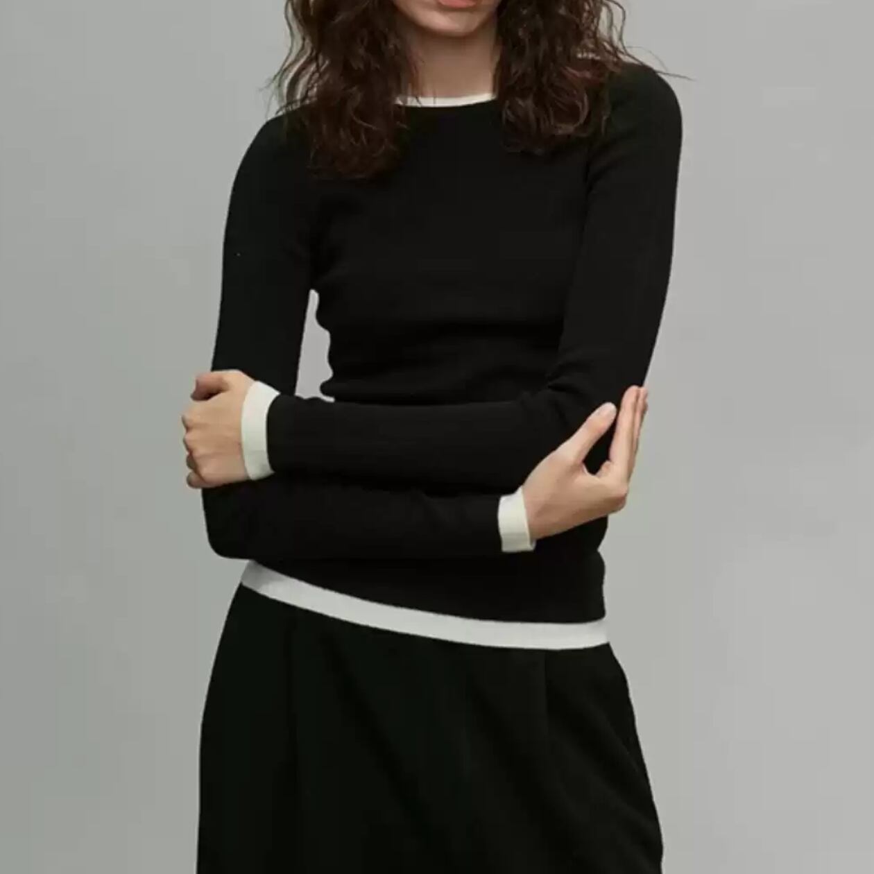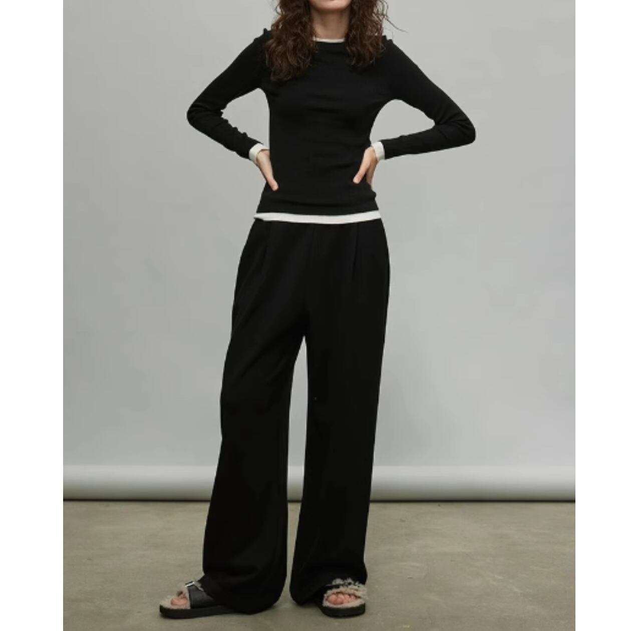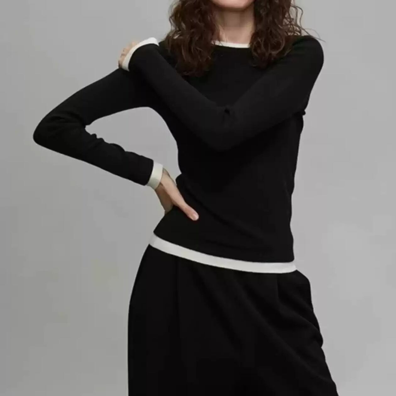 シンプルながらも、袖口と裾にあしらわれたオフホワイトのラインがさりげないアクセントになり、おしゃれ上級者の雰囲気を演出♪