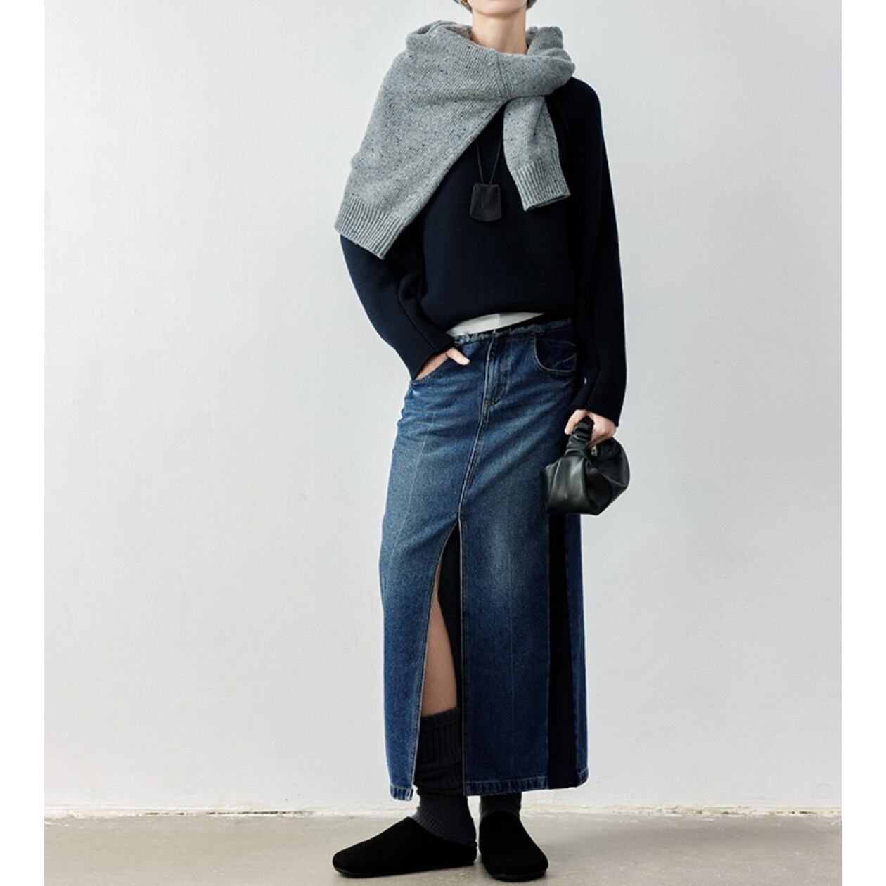 スリット入りのミモレ丈デザインは、カジュアルながらも女性らしさを演出します。