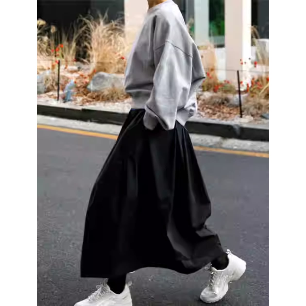 上品なミモレ丈は、大人の女性らしさを引き立てます。