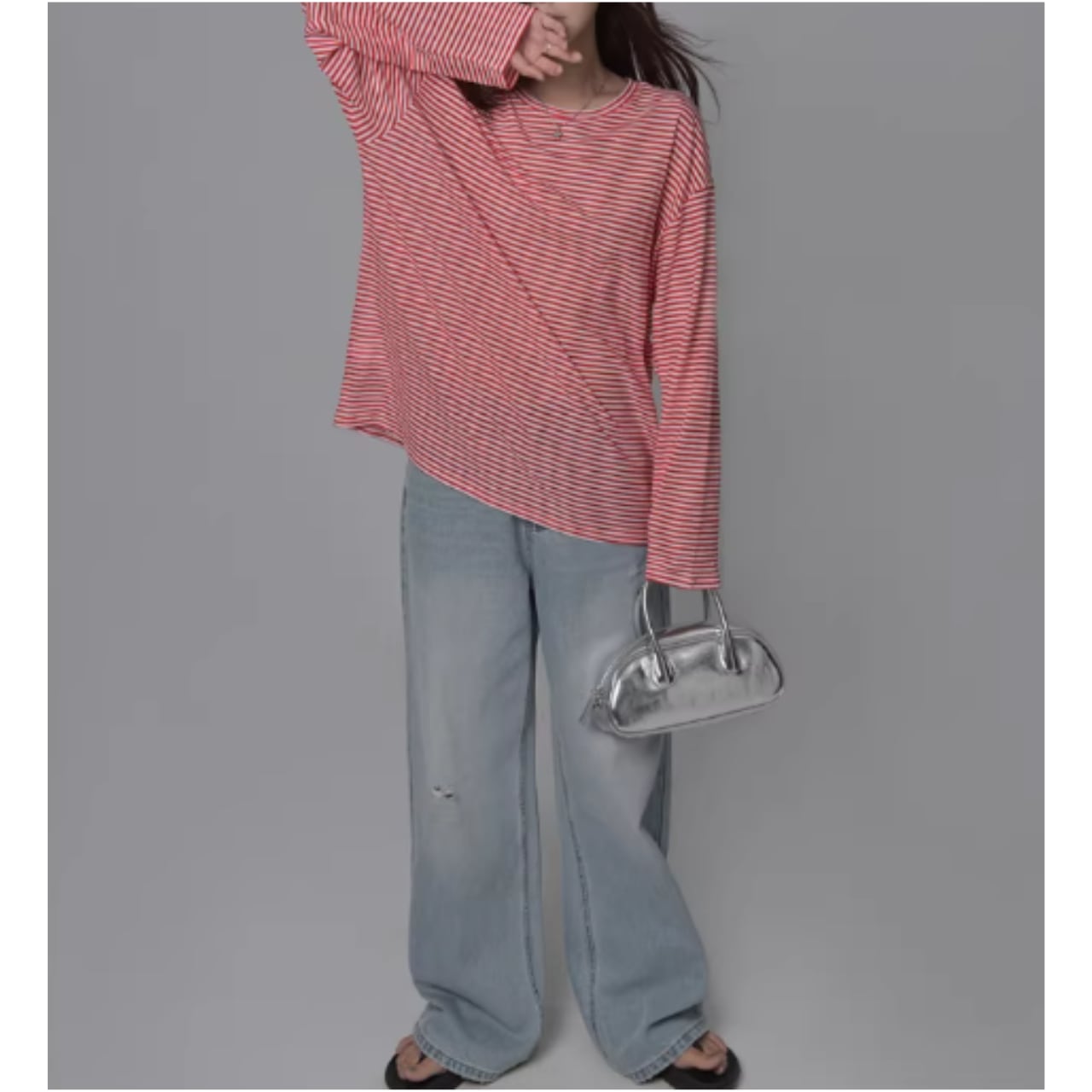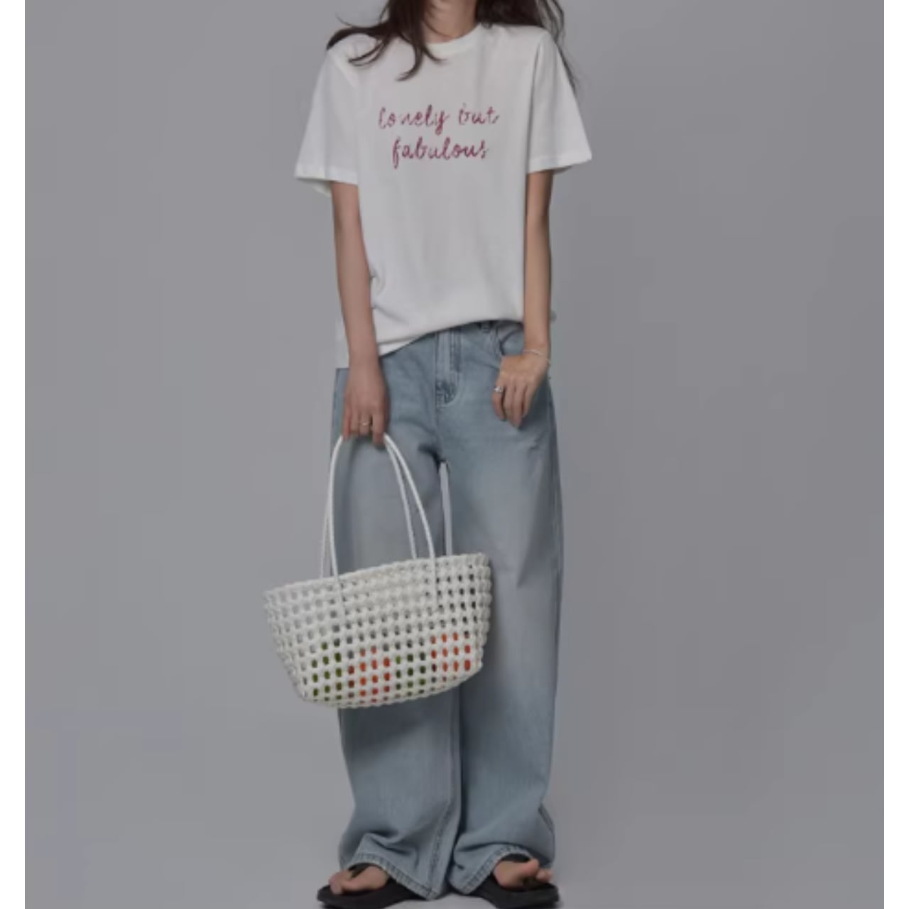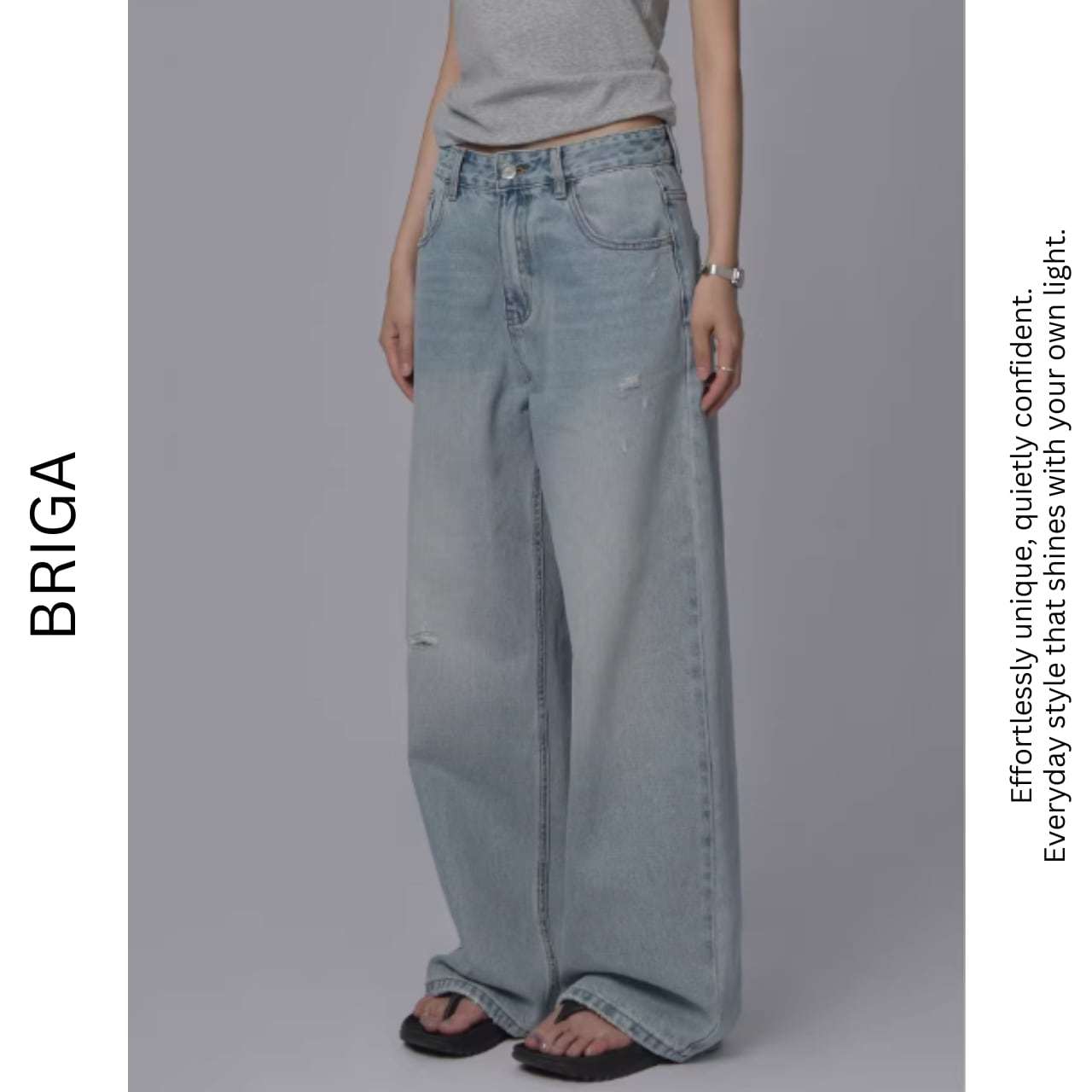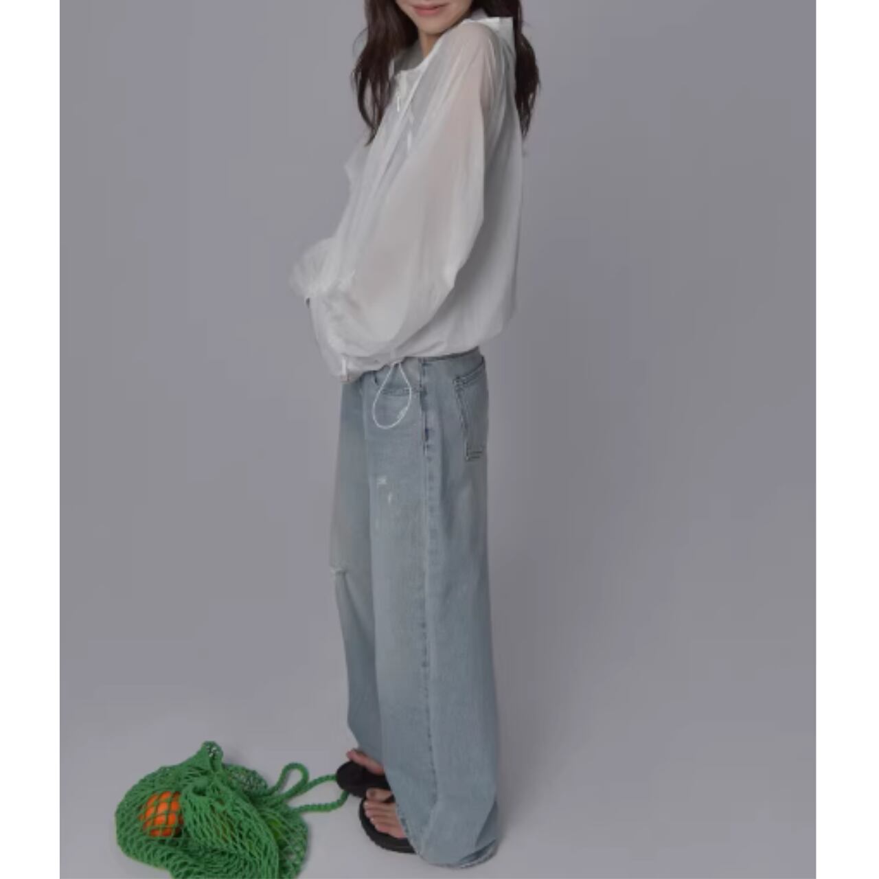 ダメージ加工がアクセントになり、シンプルなトップスとの相性も抜群。