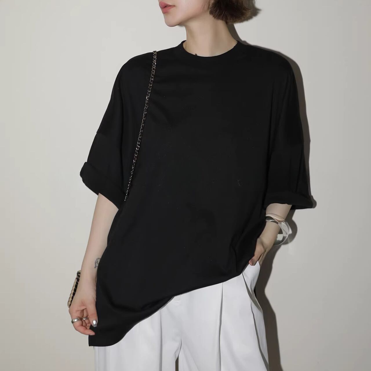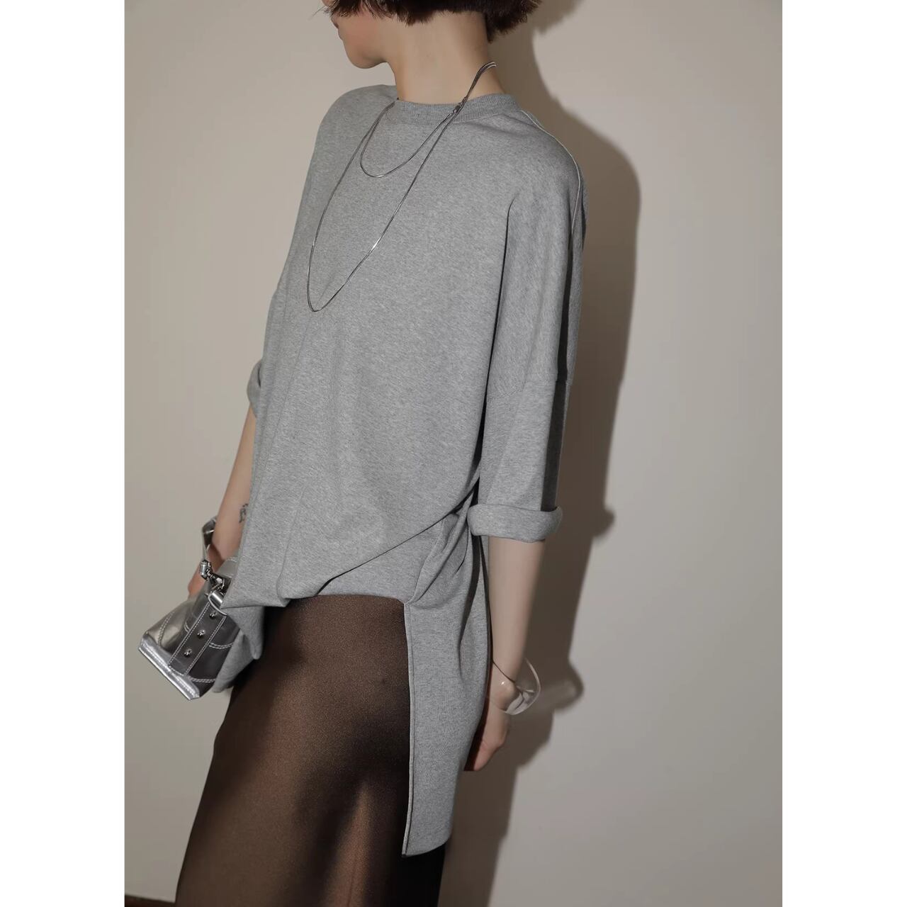 【スリット入りヒップ丈オーバーサイズ Tシャツ 】B00112