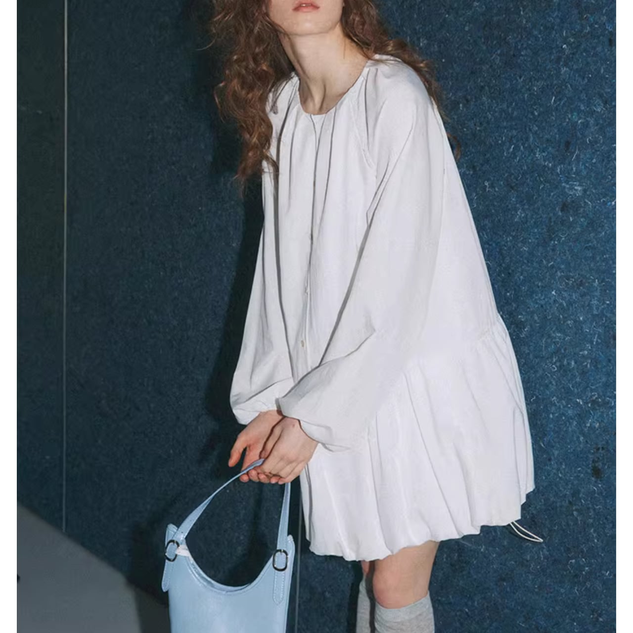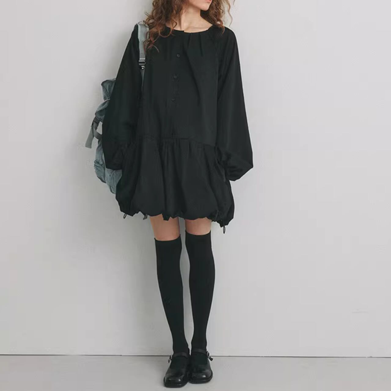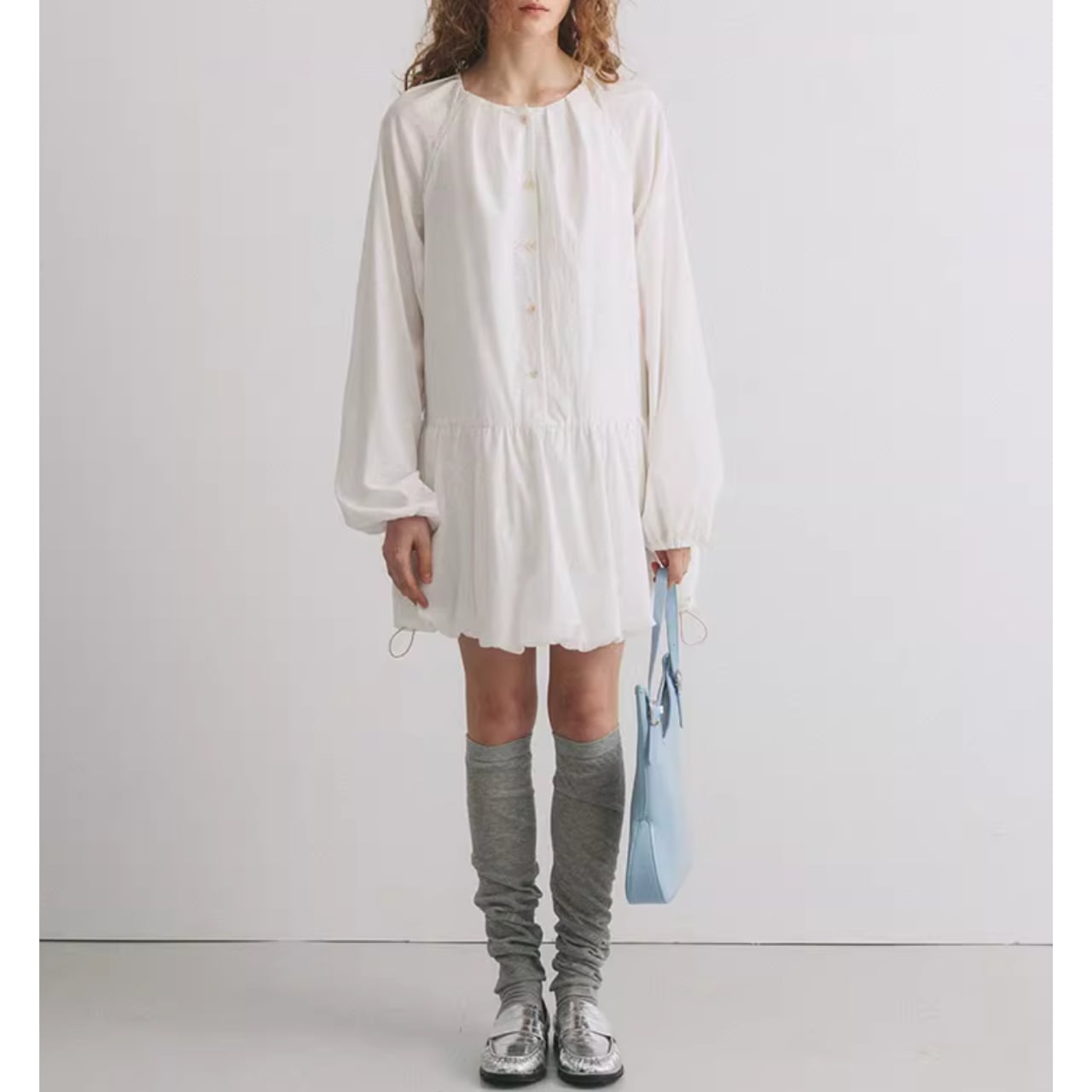【長袖ギャザーミニ丈Aラインワンピース 】B20019