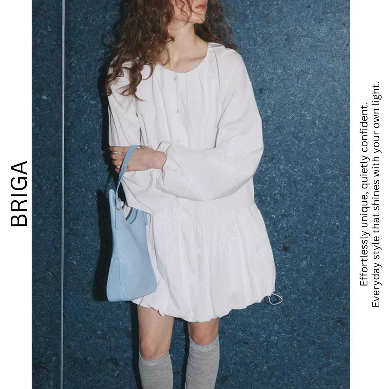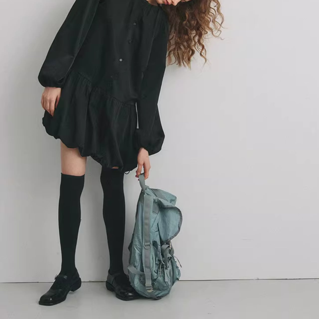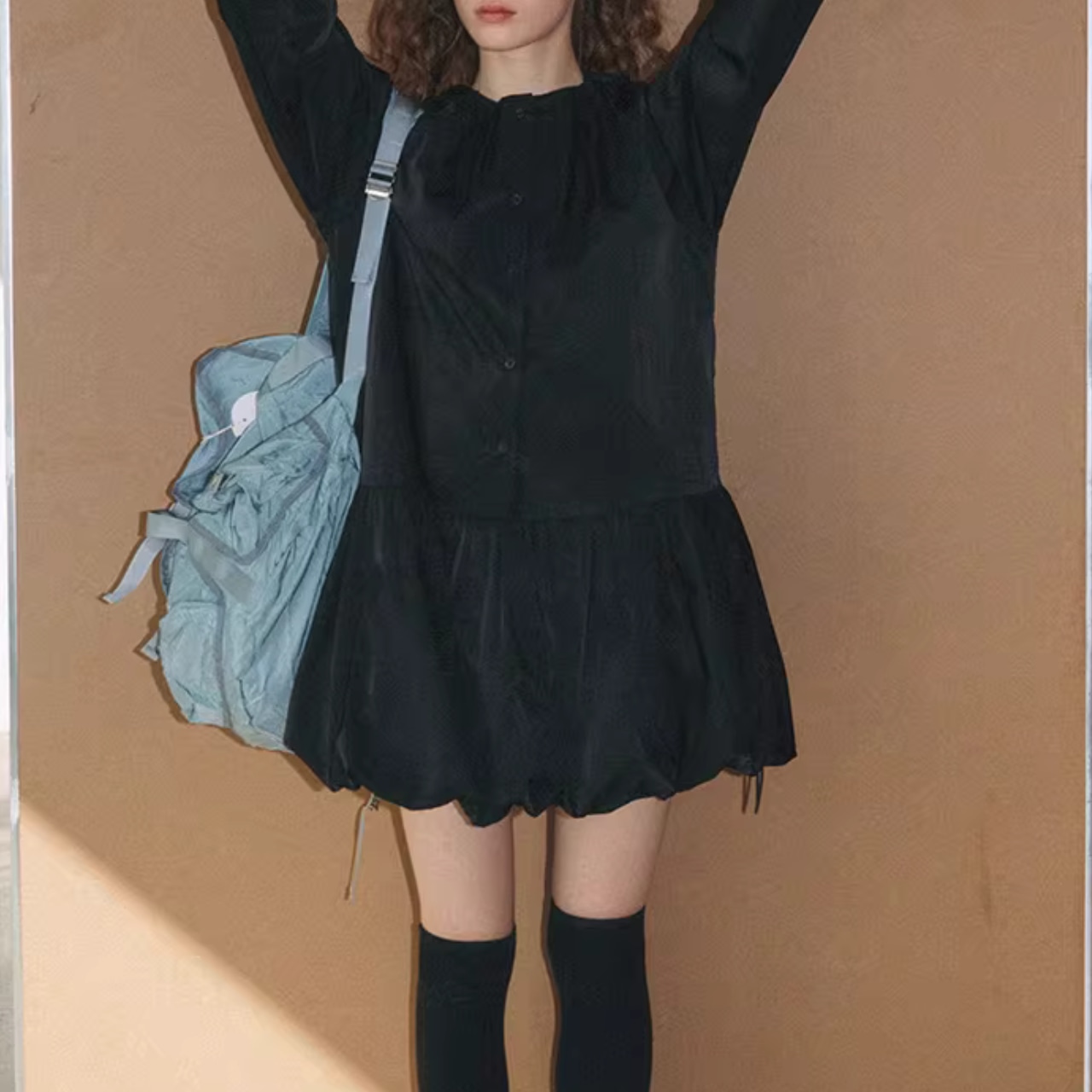 【長袖ギャザーミニ丈Aラインワンピース 】B20019