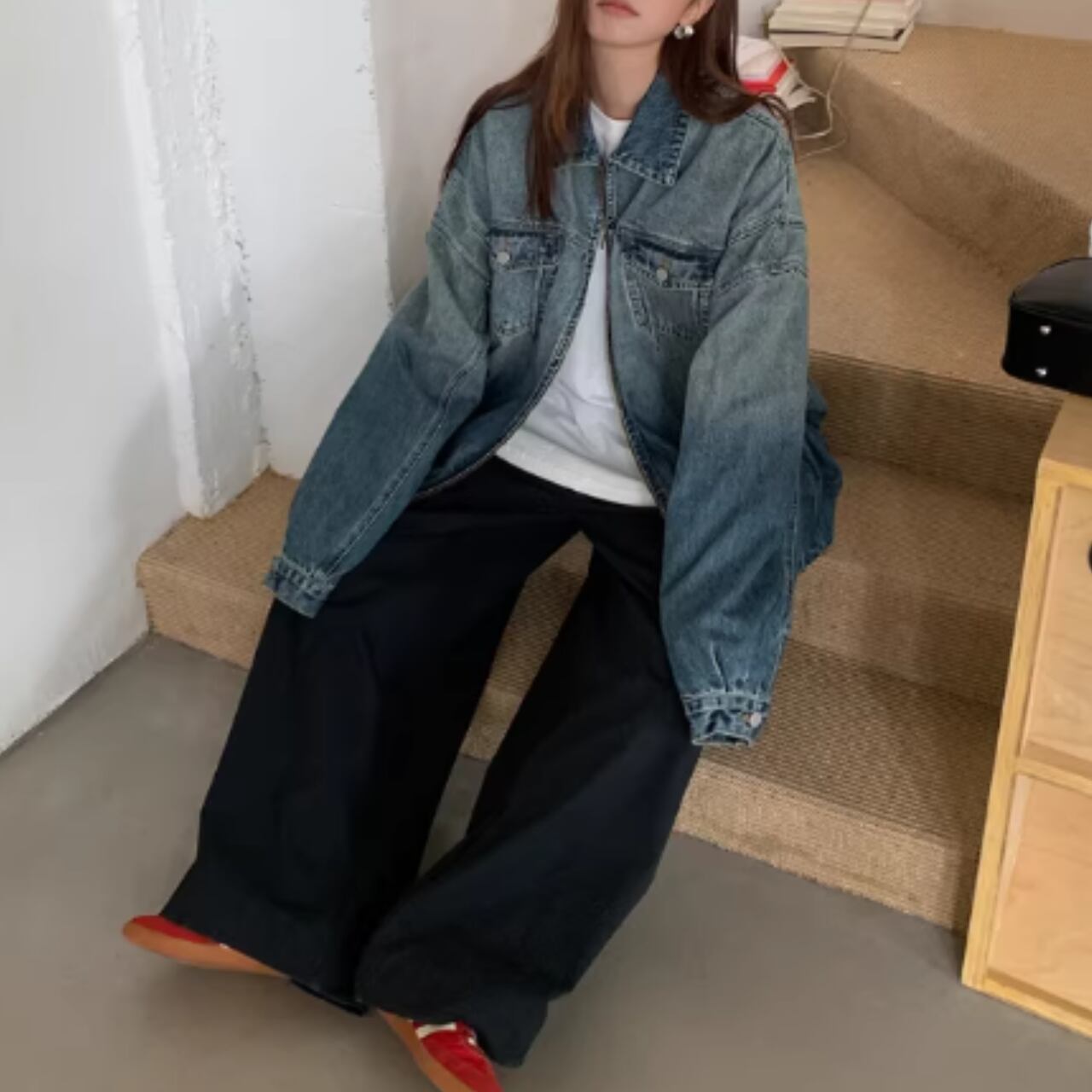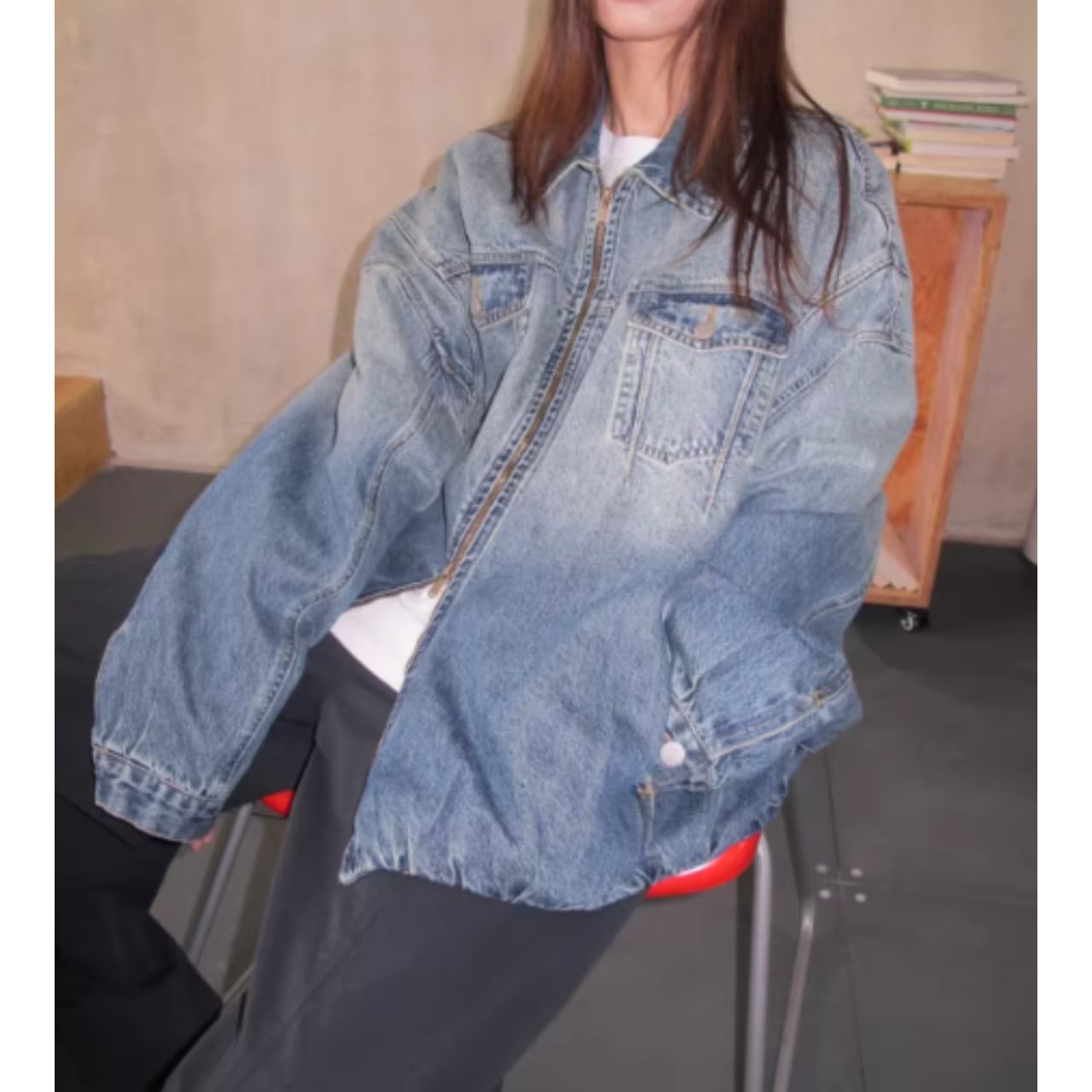 【ジップアップデニムオーバーサイズジャケット 】B30123