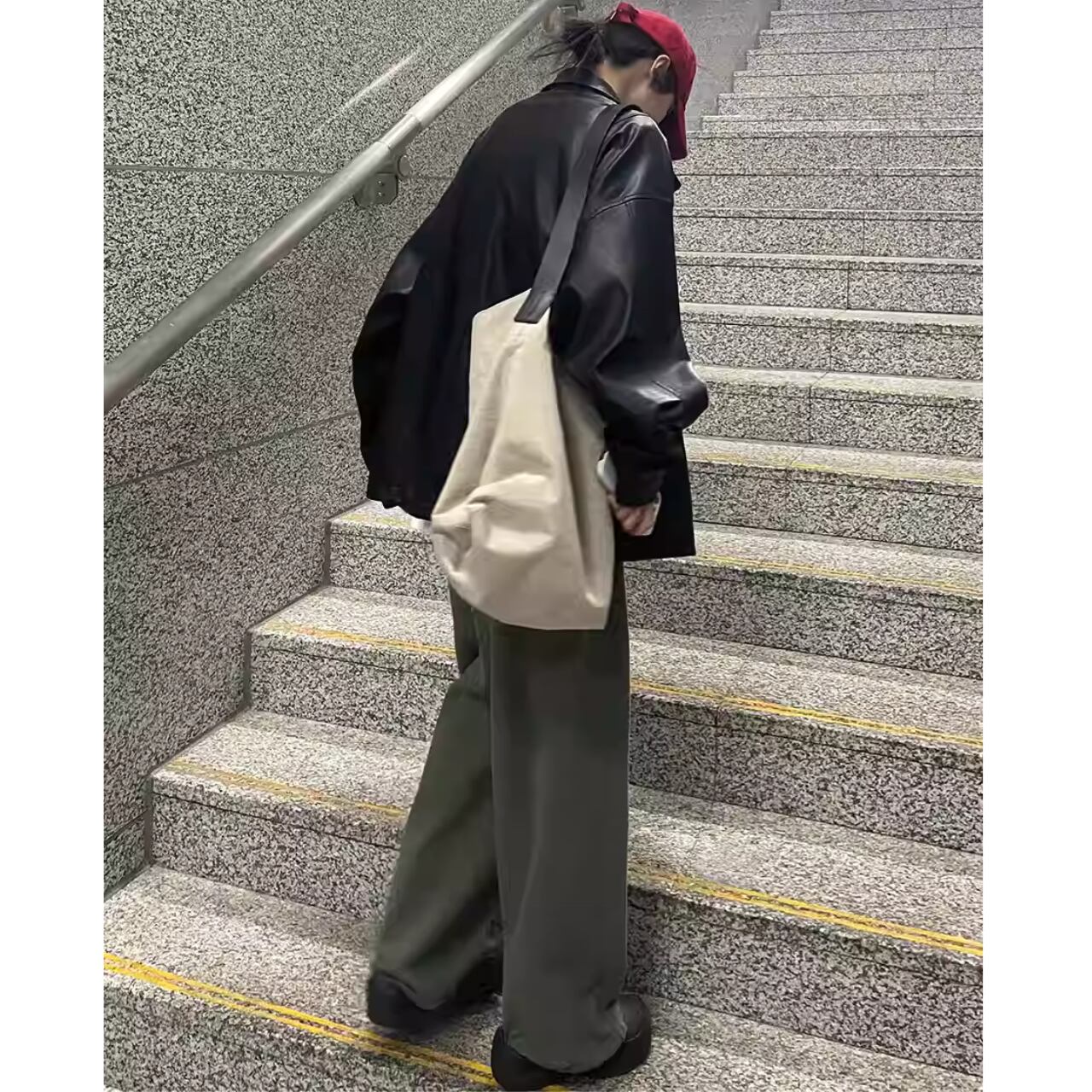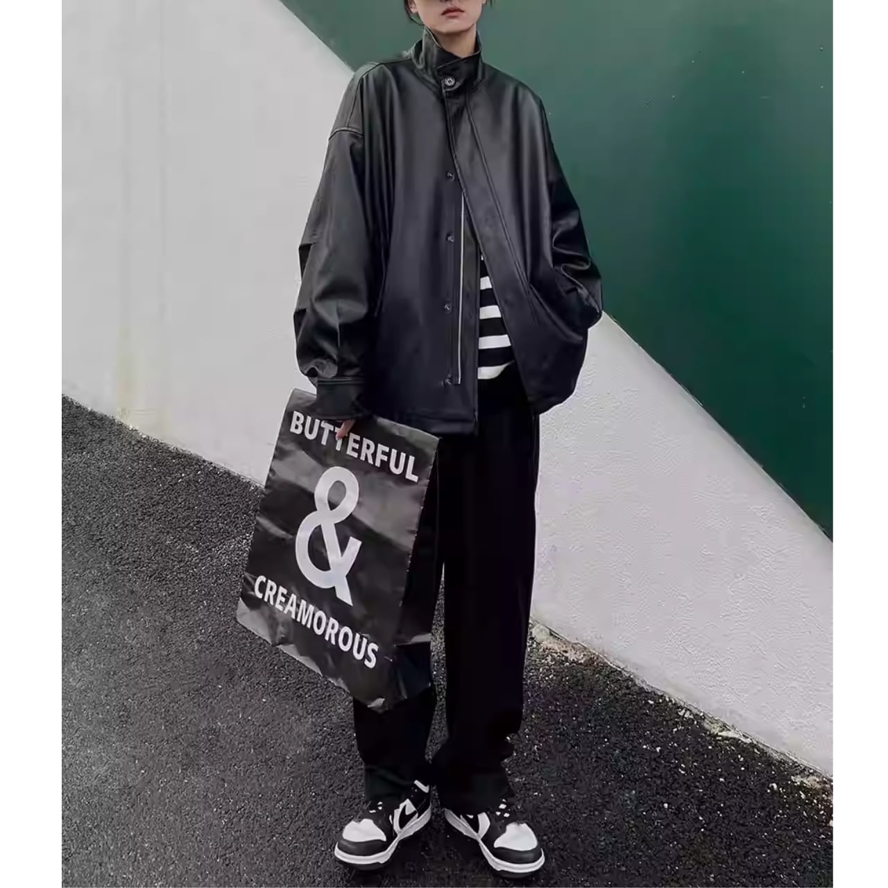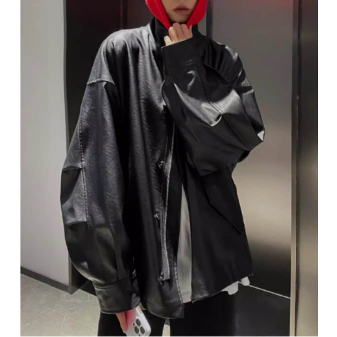 【ジップアップオーバーサイズフェイクレザージャケット 】B30124