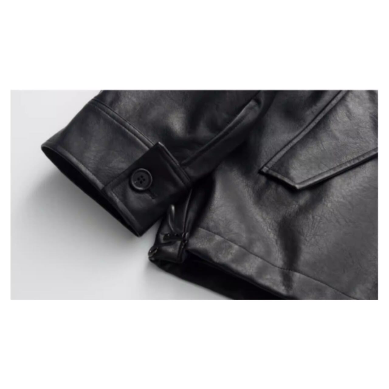 クールな印象のフェイクレザージャケット。