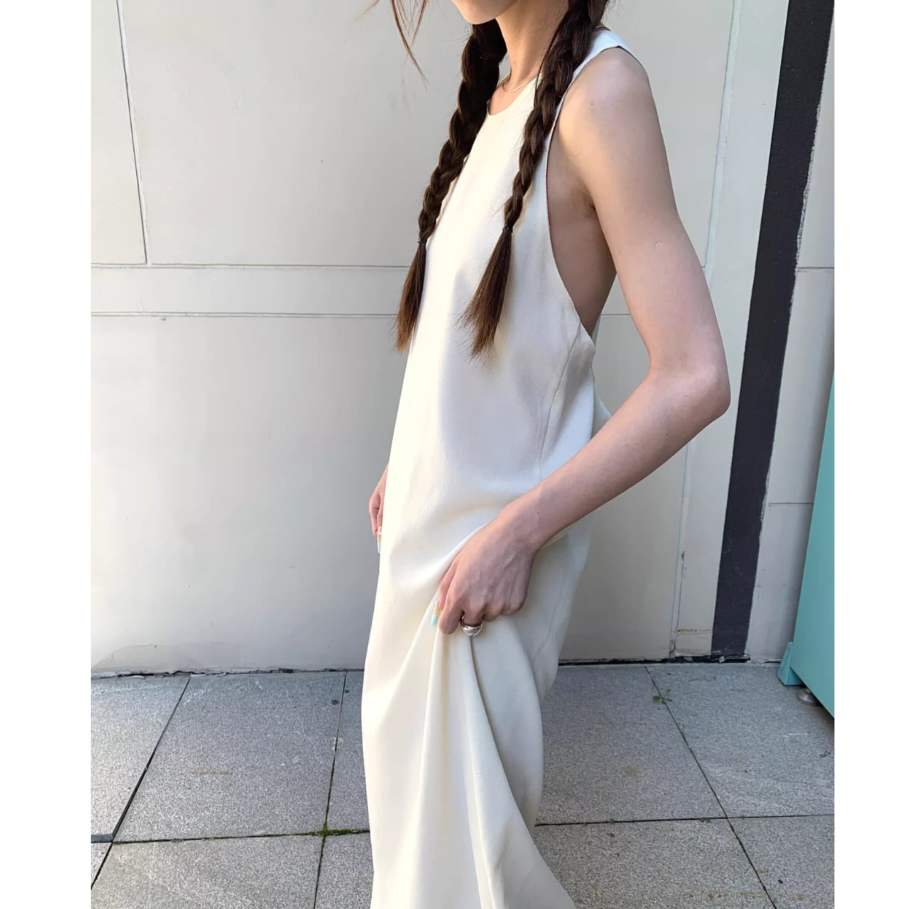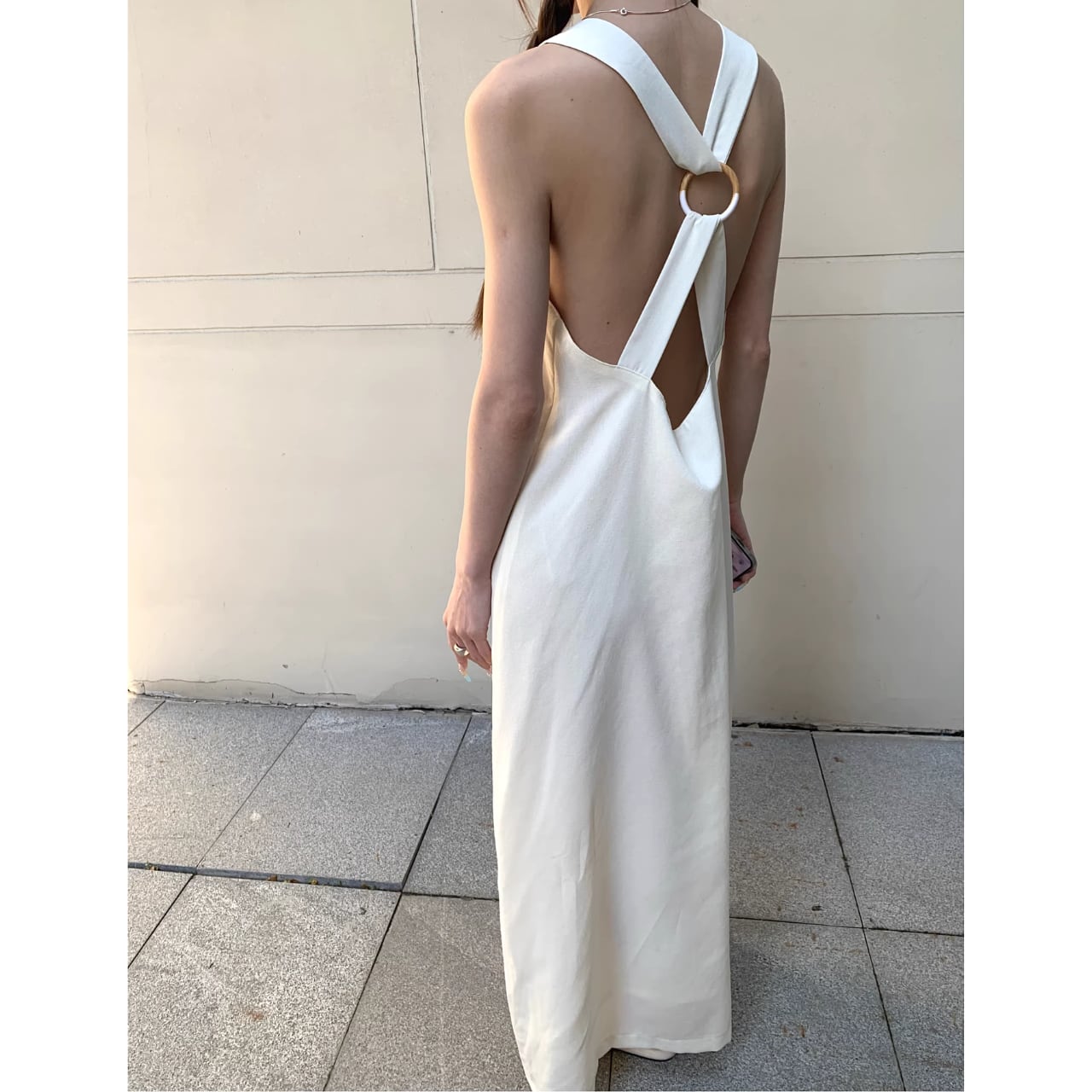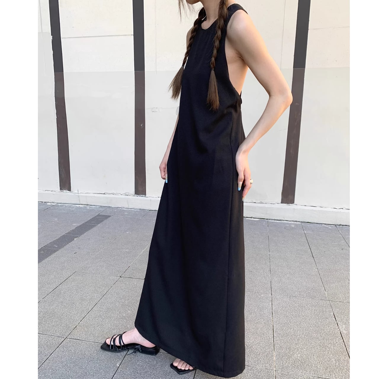 【リングストラップマキシ丈ノースリーブワンピース 】B20021