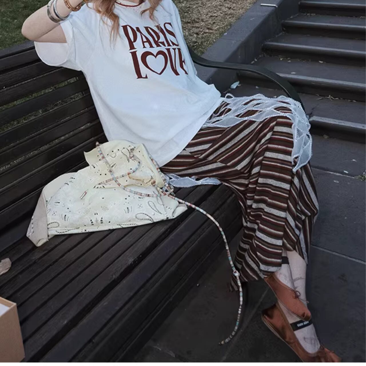 シンプルなトップスと合わせれば、スカートが主役のコーディネートが完成します。