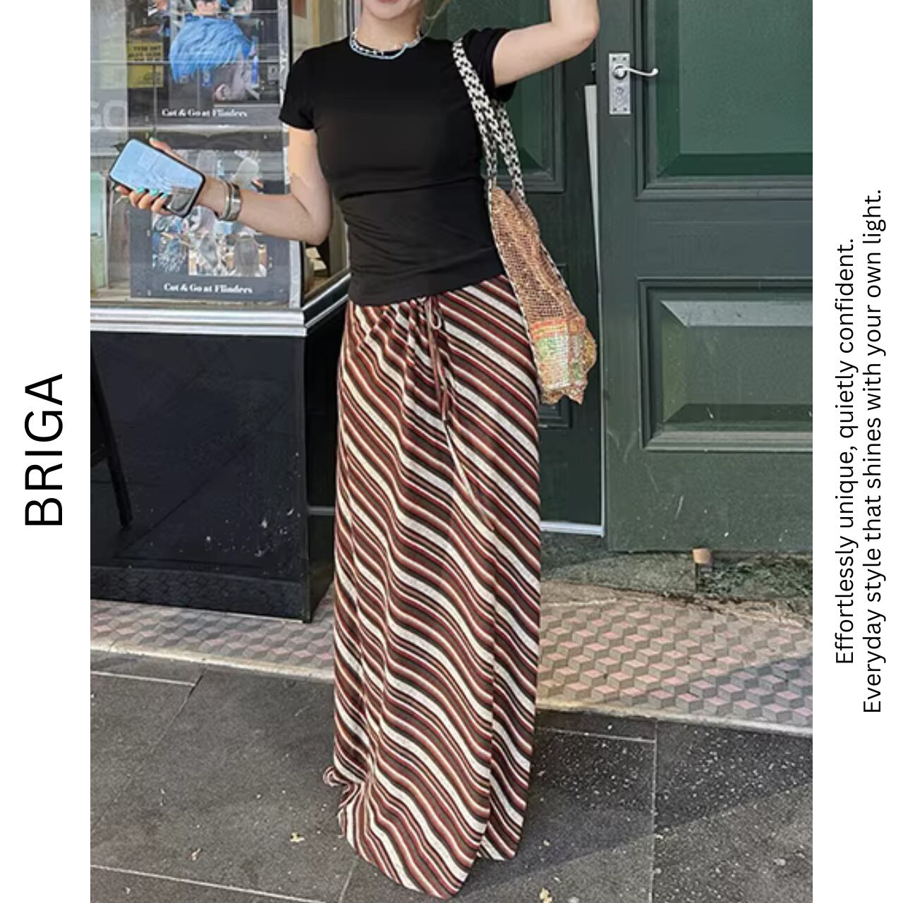 【ストライプマキシ丈フレアロングスカート 】B20028