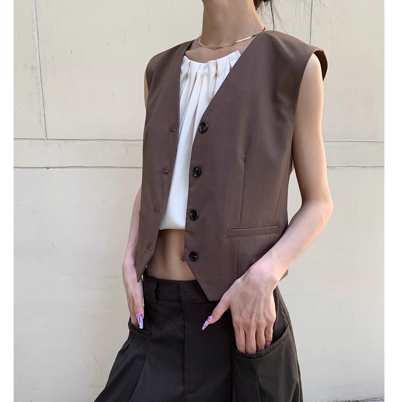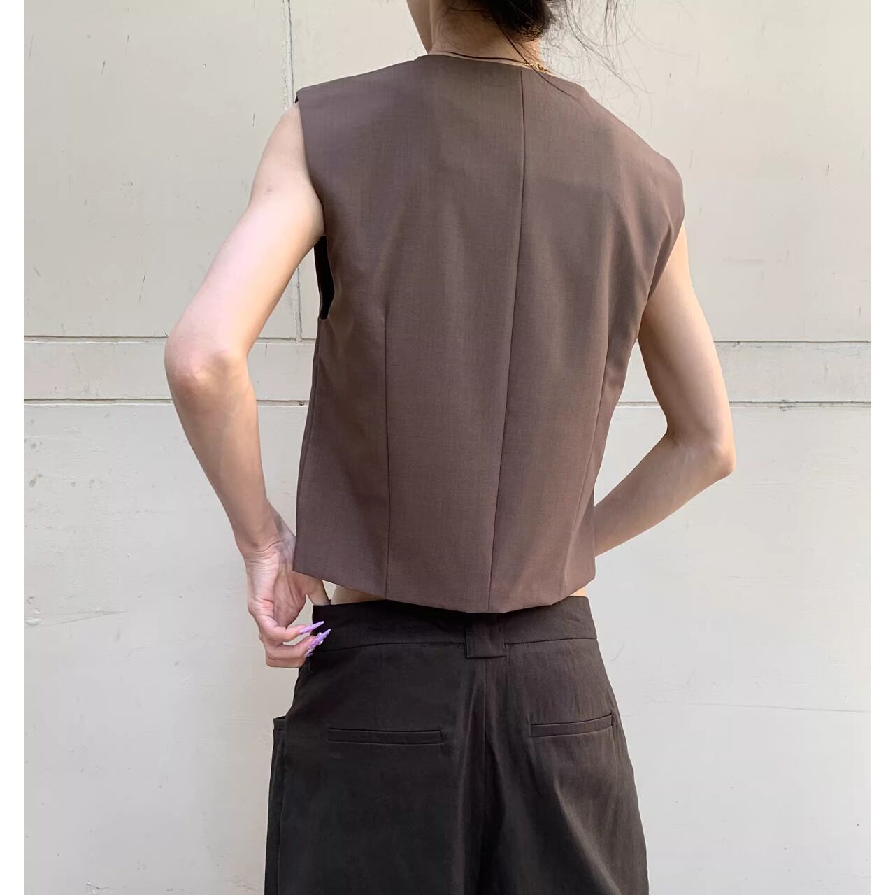 【クロップド丈Vネックノースリーブベスト 】B30129