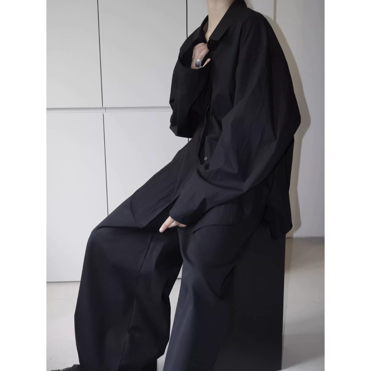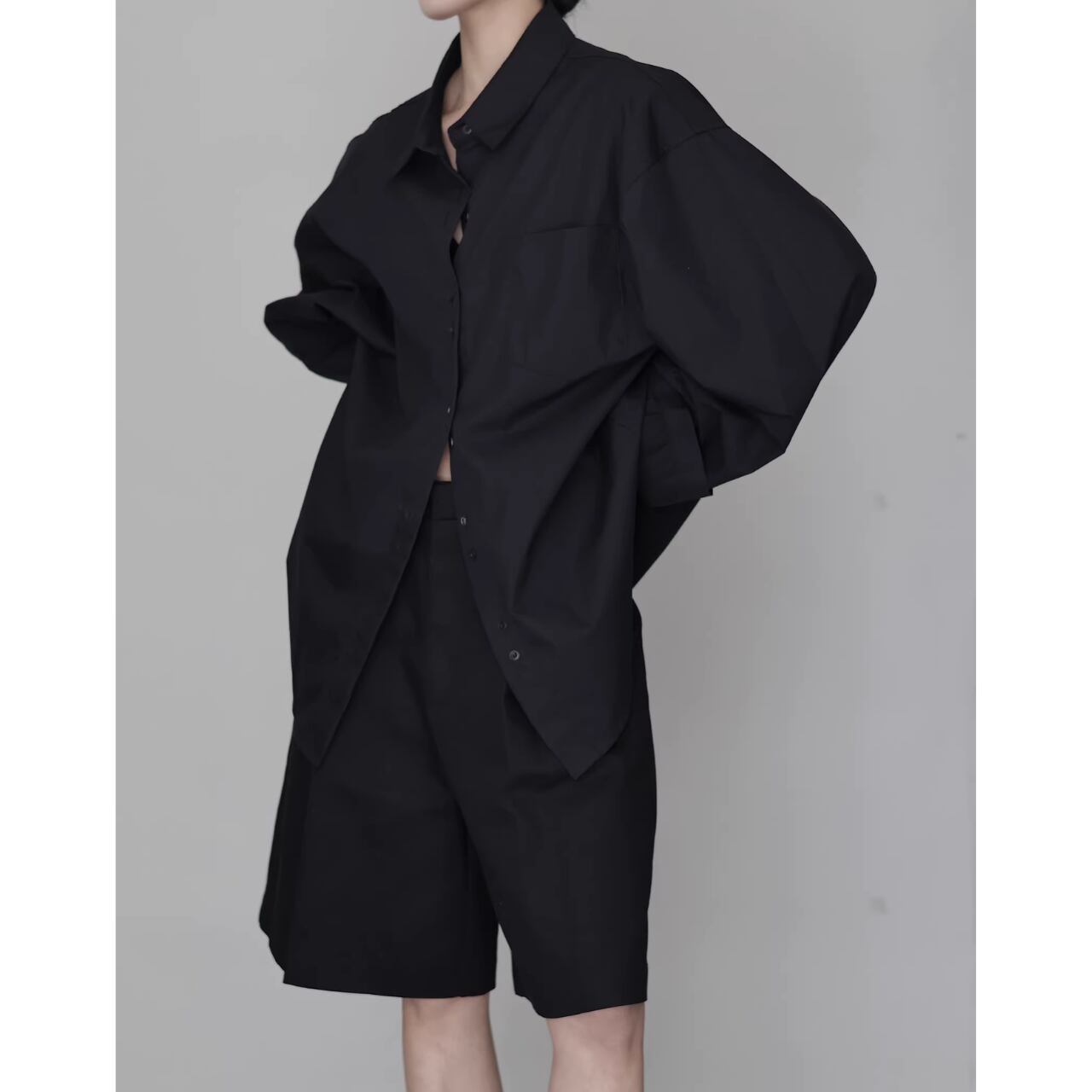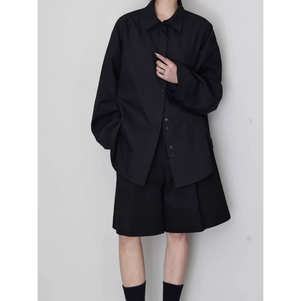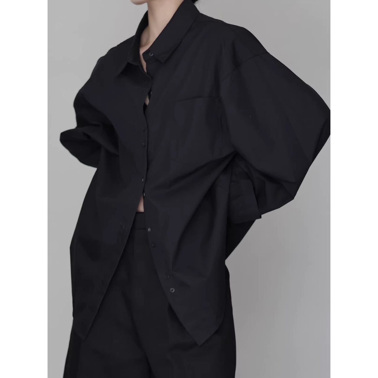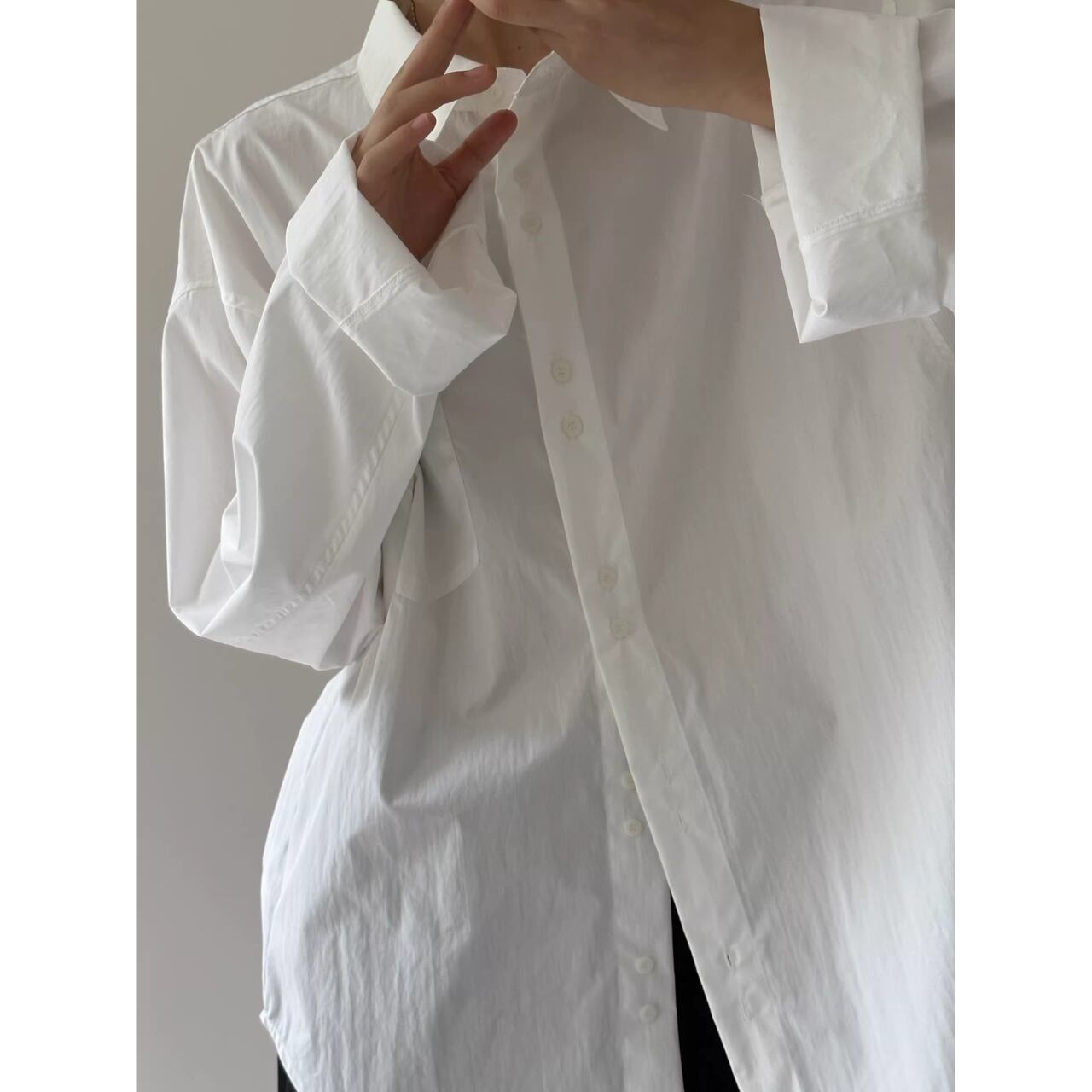 【ボタンフロントヒップ丈長袖シャツ 】B00125