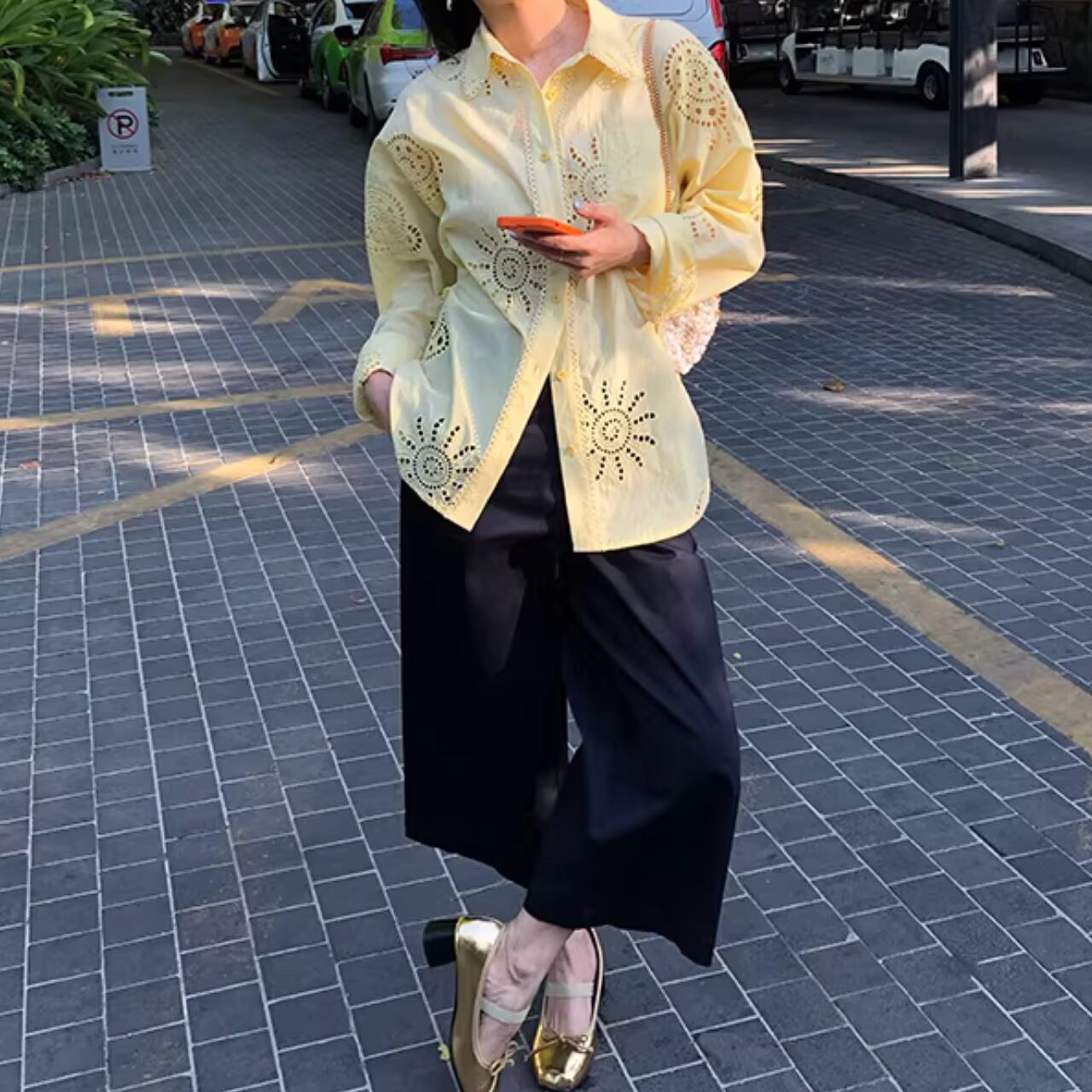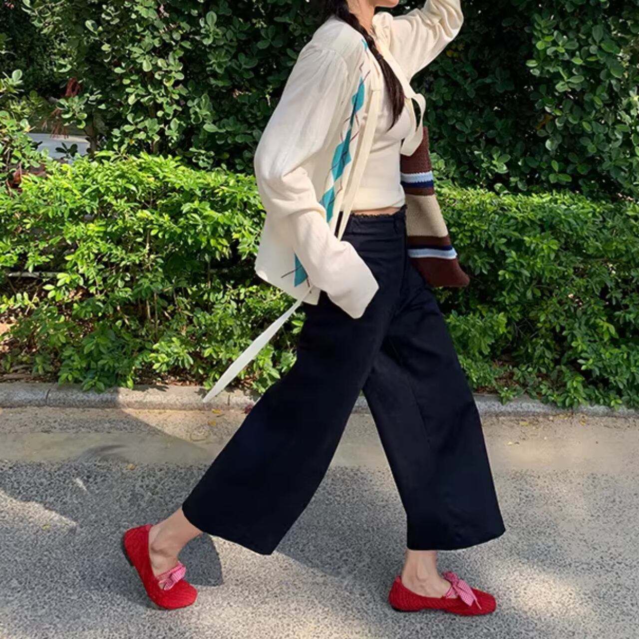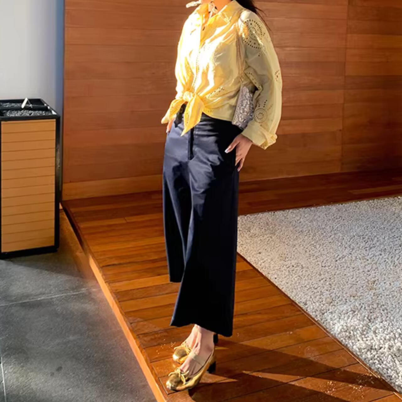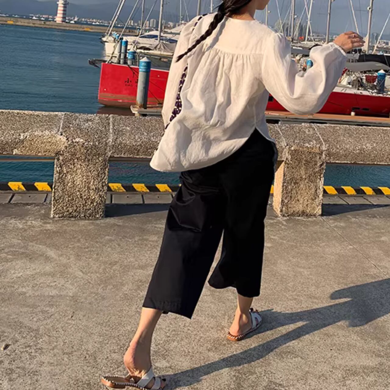ワイドなシルエットで動きやすく、普段使いはもちろん、オフィスシーンにもおすすめです。