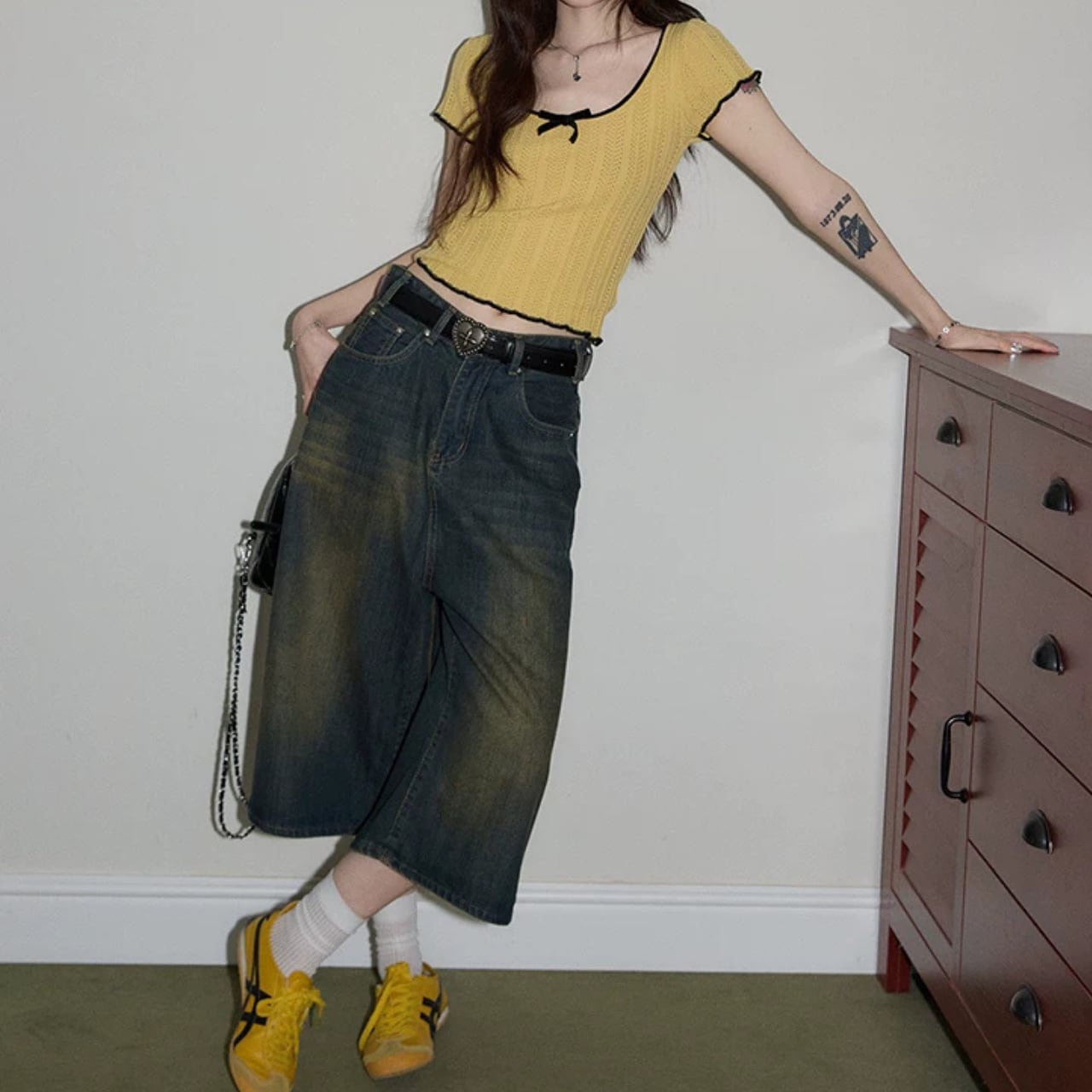 コンパクトな丈感で、ハイウエストのボトムスとの相性も抜群です。